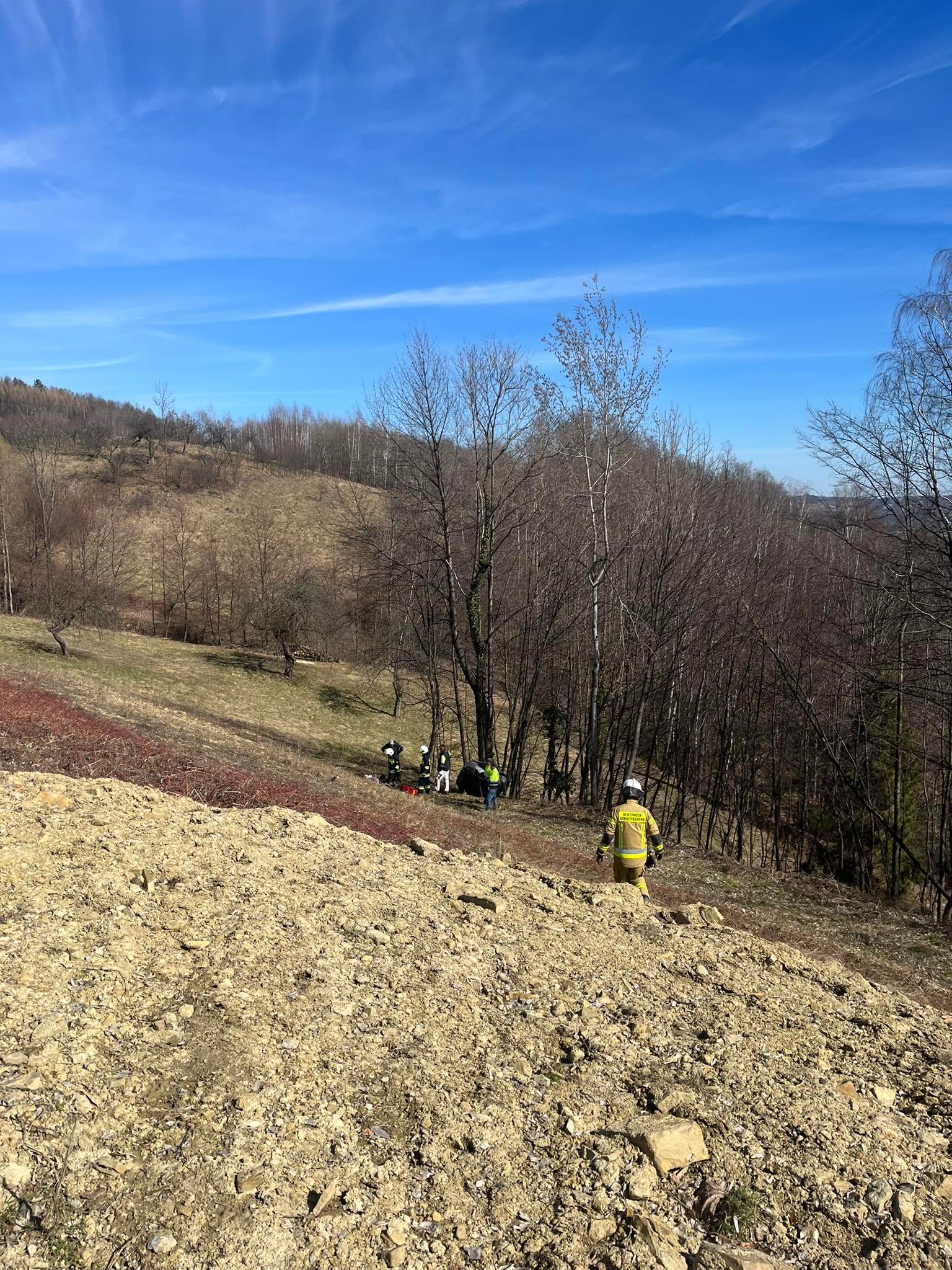 17 marca około godziny 11.33 zastępy z JRG nr 2 w Nowym Sączu, OSP Zabrzeż oraz OSP Czerniec zadysponowane zostały do działań w Zabrzeży. Doszło tam do dachowania samochodu osobowego, który znalazł się na skarpie oparty o drzewo. Samochodem podróżował sam kierujący, który znajdował się poza pojazdem i został poszkodowany. Pomocy poszkodowanemu udzielili strażacy a następnie ratownicy Pogotowia ratunkowego. Strażacy sprawdzili samochód, który stabilnie oparty był o drzewo. Działania strażaków trwały półtorej godziny.