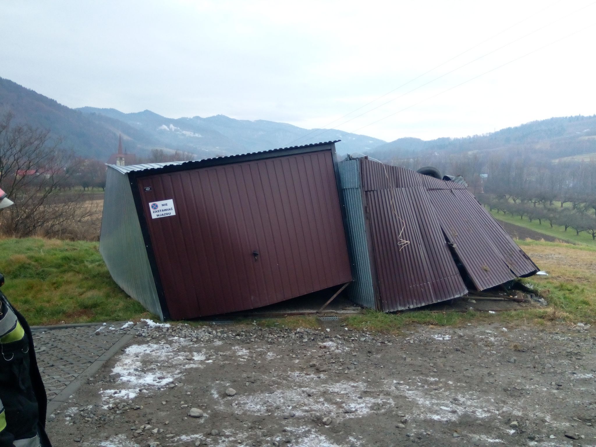 5 grudnia o godzinie 14.33 zastępy z JRG nr 2 w Nowym Sączu, OSP Zabrzeż, Czerniec oraz Łącko zadysponowane zostały do Zabrzeży. Po przybyciu na miejsce zdarzenia ustalono, że samochód osobowy Fiat Grande Punto wypadł z drogi na pobocze, dachował i uderzył w blaszane garaże. Pojazd znajdował się na dachu przygniatając jeden z blaszanych garaży. W pojeździe podróżowało pięć osób, które wyszły z pojazdu o własnych siłach. Jedna z pasażerek uskarża się na dolegliwości. W pojeździe i w garażu nie było innych osób poszkodowanych, a w pojeździe nie było wycieków. Działania strażaków polegały na zabezpieczeniu miejsca zdarzenia, udzieleniu kwalifikowanej pierwszej pomocy osobie poszkodowanej, odpięciu akumulatora w pojeździe oraz wprowadzeniu i kierowaniu ruchem w sposób wahadłowy. Sprawdzono garaże pod kątem składowania materiałów niebezpiecznych. Nie stwierdzono dodatkowych zagrożeń. Działania strażaków trwały półtorej godziny.