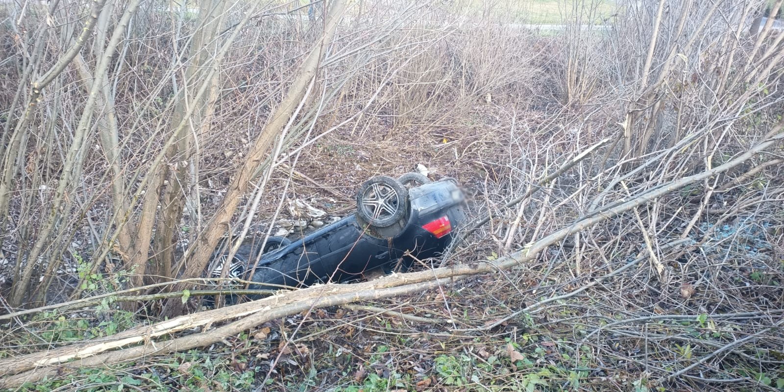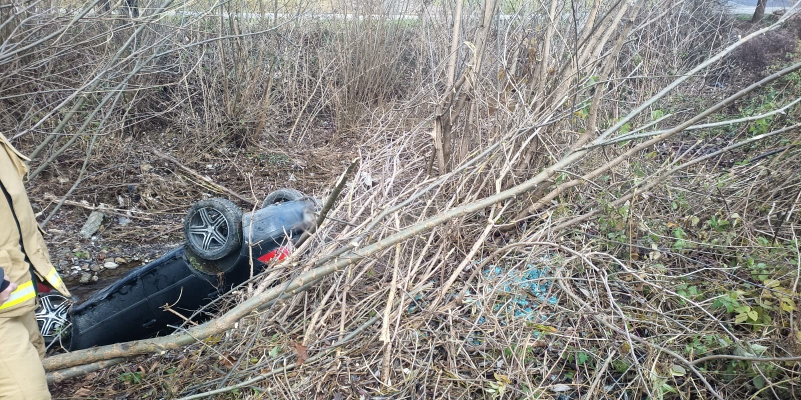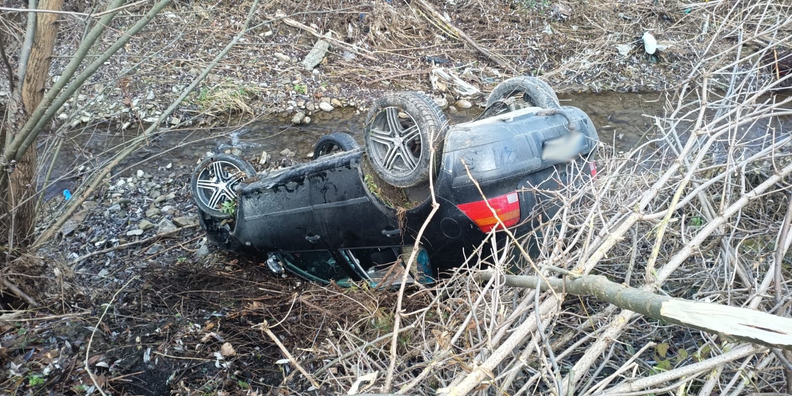 Zagorzyn – samochód wypadł z drogi i wpadł do koryta potoku
