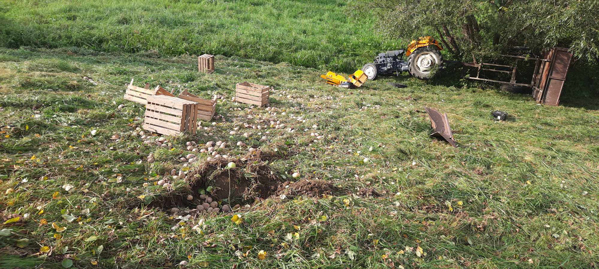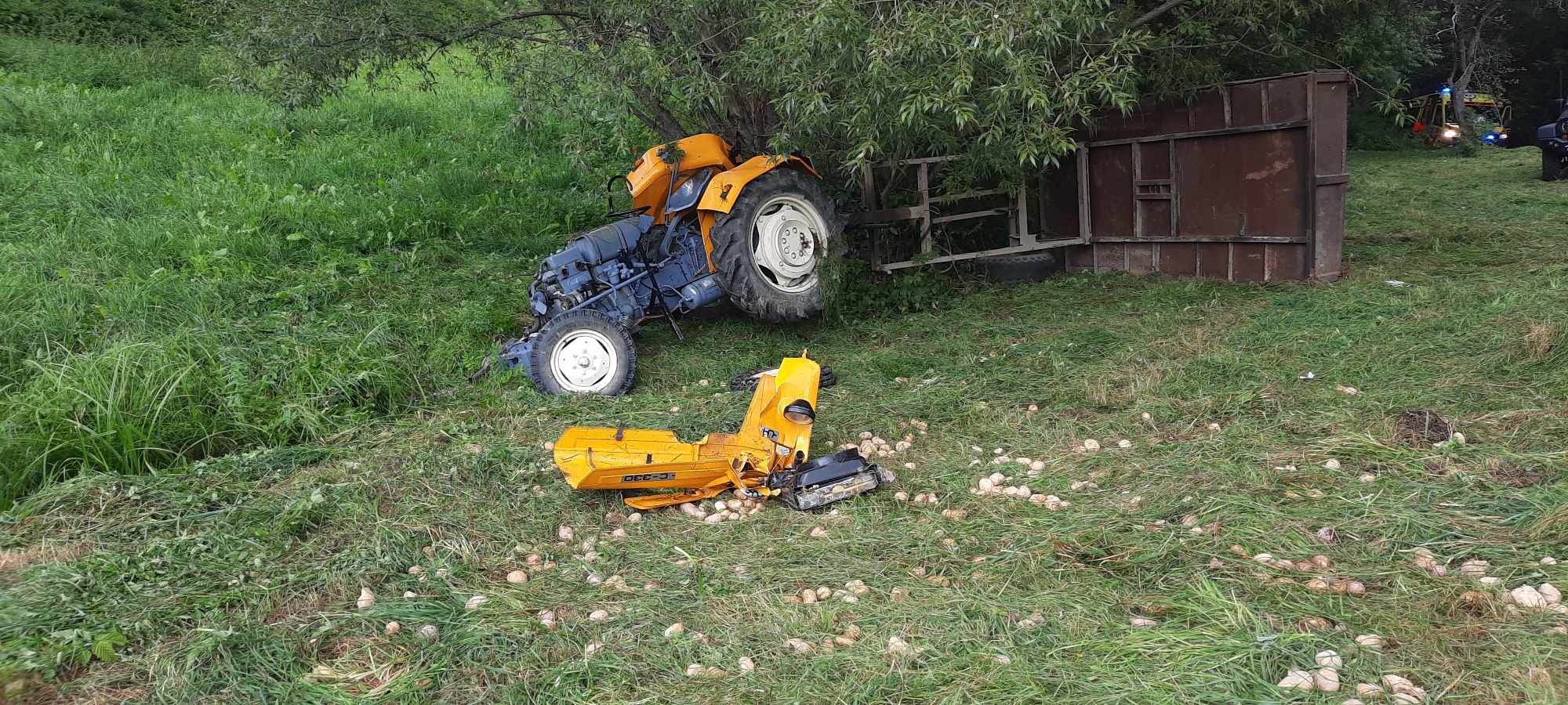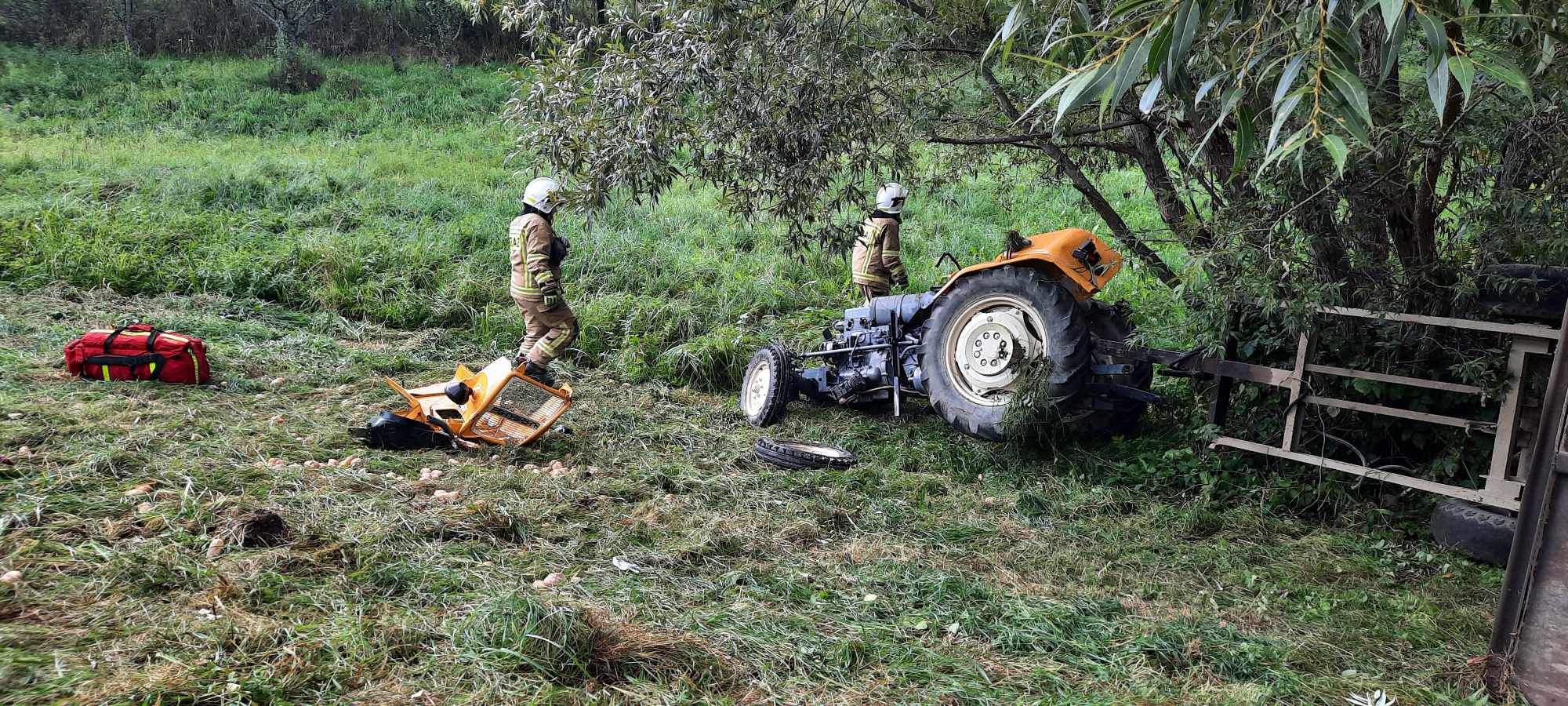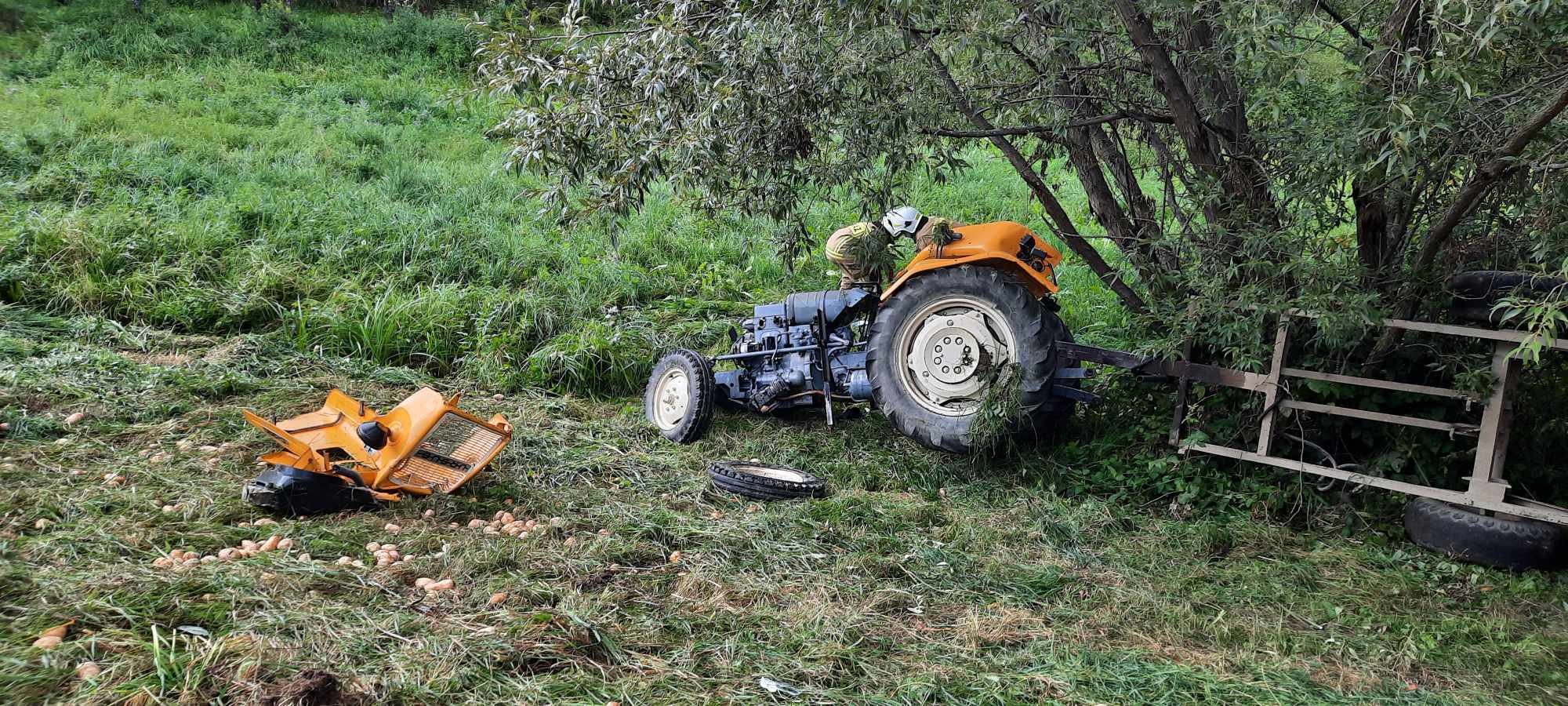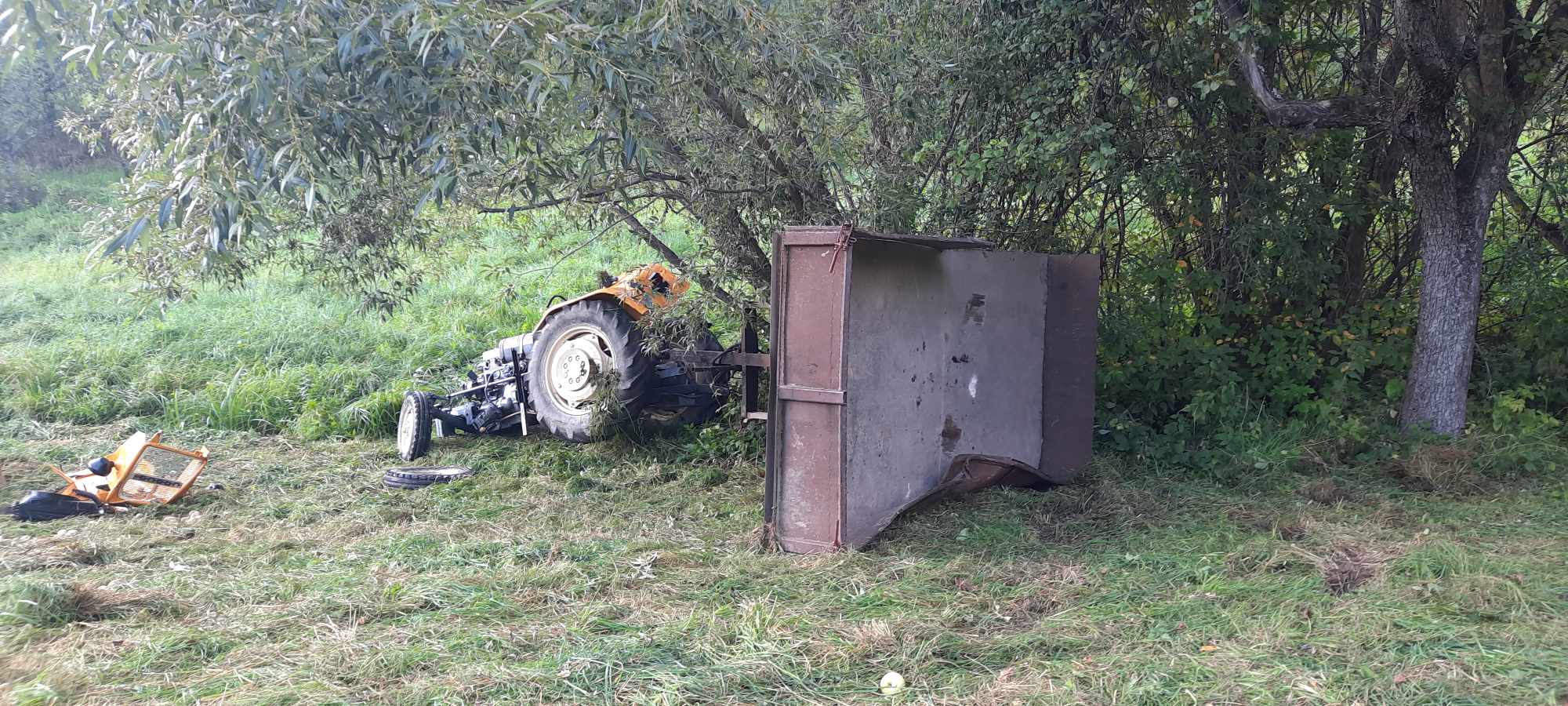 12 września o godzinie 15.48 zastępy z JRG nr 2 w Nowym Sączu oraz OSP Zagorzyn zadysponowane zostały do działań w Zagorzynie. Po przybyciu na miejsce zdarzenia ustalono, że 52 letni mężczyzna znajdował się obok uszkodzonego ciągnika rolniczego. Osoba poszkodowana znajdowała się pod opieką ratowników medycznych Pogotowia Ratunkowego. Działania zastępów straży polegały na zabezpieczeniu terenu działań oraz ciągnika. Przeniesiono osobę poszkodowaną do karetki. Sprawdzono akumulator ciągnika, który wypadł podczas zdarzenia i znajdował się obok pojazdu. Osoba poszkodowana została przewieziona do szpitala. Dalsze działania polegały na zabezpieczeniu wyciekającego paliwa poprzez odprowadzenie go do zbiornika oraz zabezpieczeniu pojazdu do czasu przyjazdu Policji. Działania strażaków trwały niespełna dwie godziny.