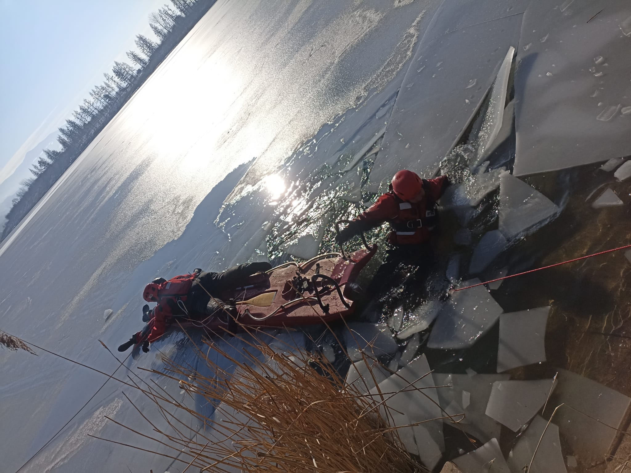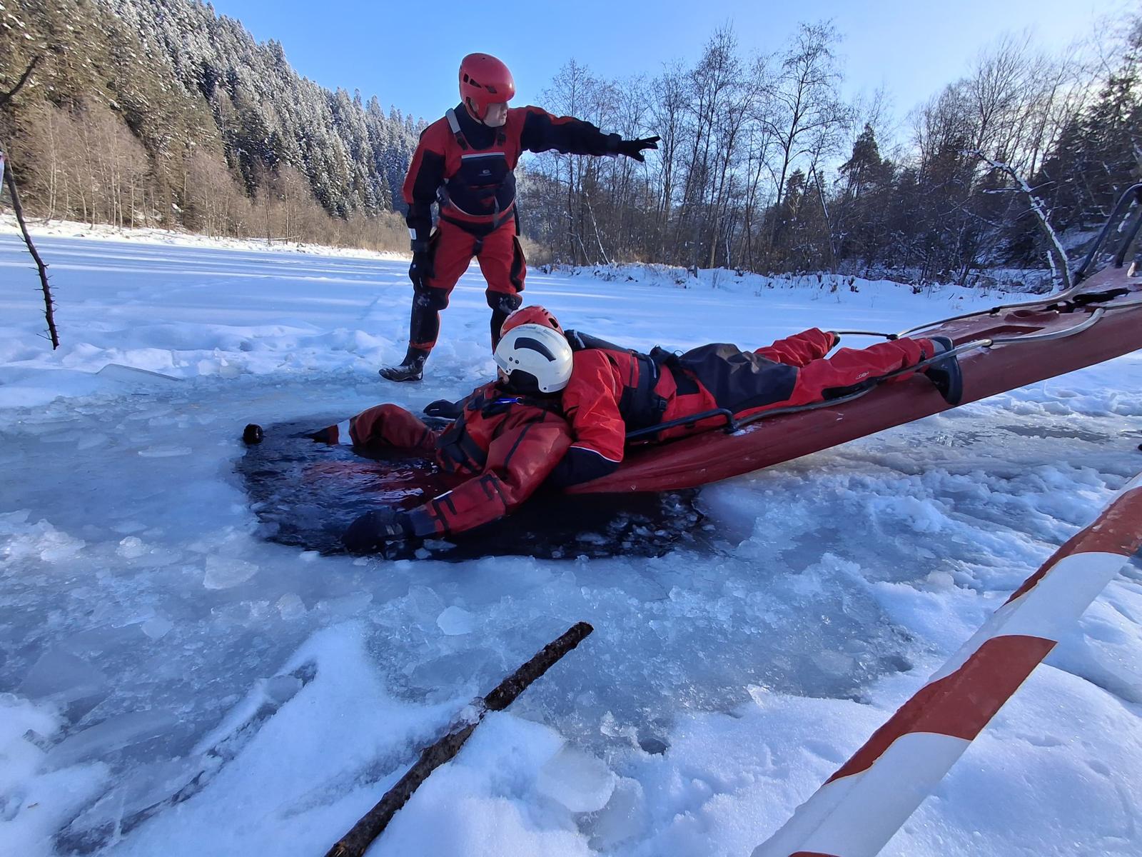 Zajęcia praktyczne z zakresu „ratownictwa na akwenach zalodzonych” dla jednostek OSP posiadających sanie lodowe