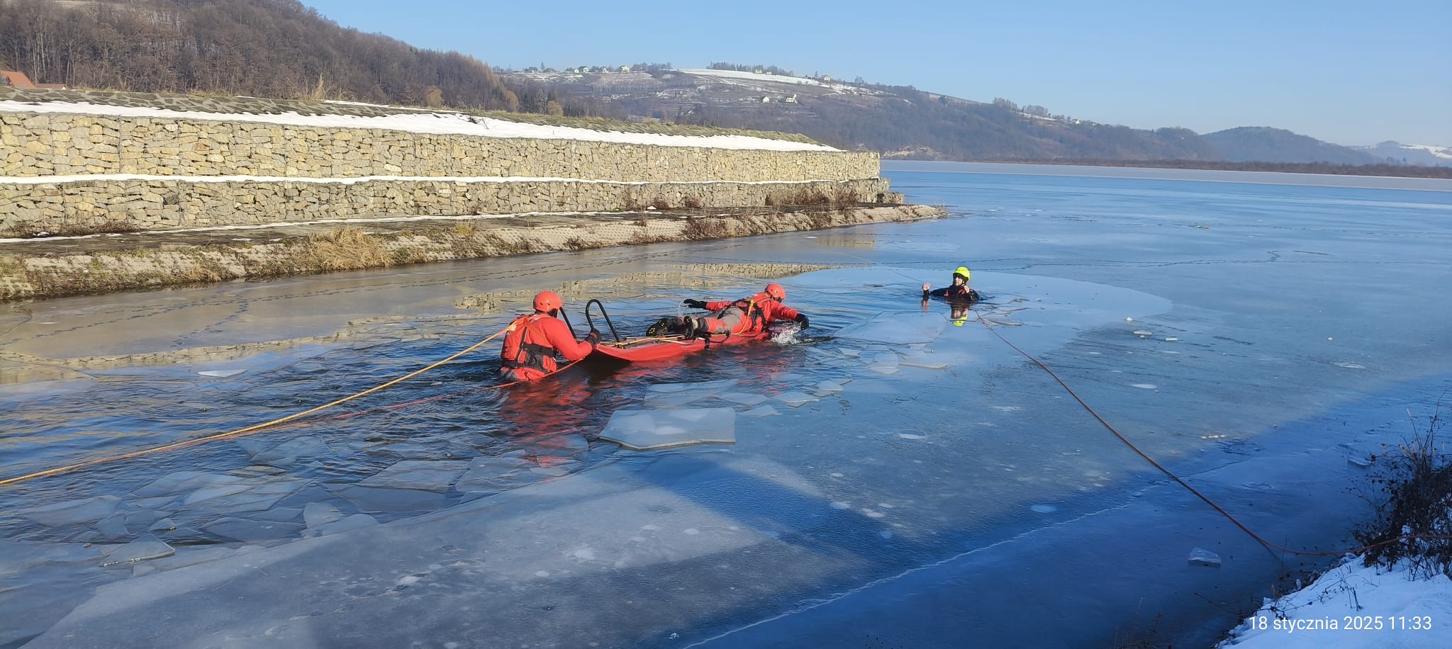18 stycznia gdy sądeccy strażacy dogaszali bardzo duży pożar, który powstał w Nowym Sączu a Specjalistyczna Grupa Poszukiwawczo-Ratownicza udała się na Podkarpacie aby ratować osobę zasypaną w studni, równocześnie na akwenach wodnych na Sądecczyźnie odbyły się zajęcia praktyczne z zakresu „ratownictwa na akwenach zalodzonych” dla jednostek OSP z terenu powiatu nowosądeckiego posiadających sanie lodowe. Jak wyglądały zajęcia można obejrzeć na zdjęciach. Więcej zdjęć na Facebook KM PSP Nowy Sącz