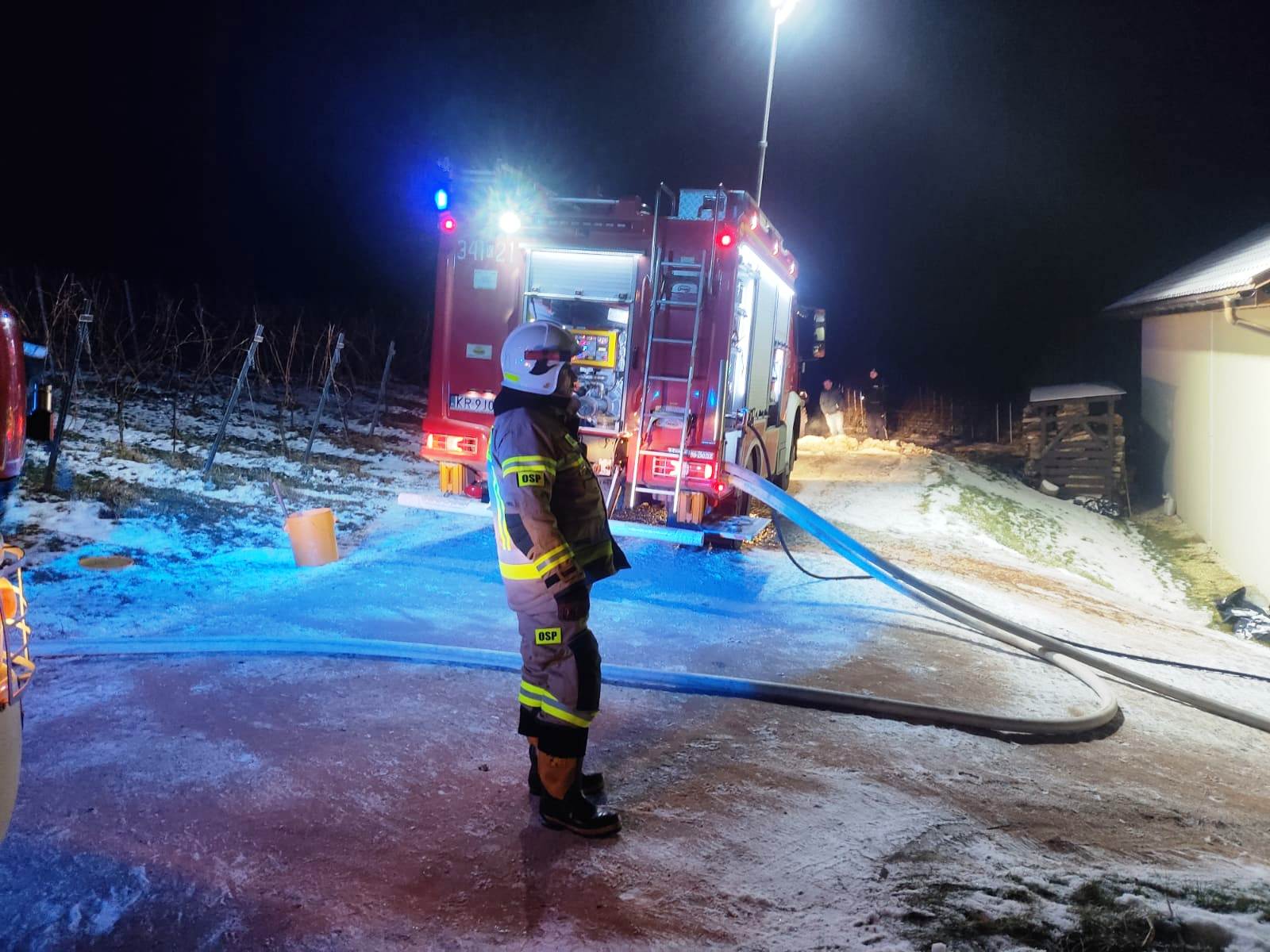 28 grudnia o godzinie 18.19 zastępy z JRG nr 1 w Nowym Sączu, OSP Gródek nad Dunajcem, OSP Przydonica oraz OSP Jelna zadysponowane zostały do działań w Zbyszycach. Ze względu na usytuowanie budynku oraz braku widocznych oznak pożaru dojazd na miejsce był utrudniony. Po przybyciu na miejsce zdarzenia ustalono, że palił się drewniany budynek mieszkalny (tzw. kanadyjka). W chwili przybycia strażaków na miejsce zdarzenia pożarem objęty był cały parter a ogień wydostawał się na zewnątrz. Z relacji obecnego na miejscu mężczyzny wynikało, że wewnątrz budynku nikt się nie znajduje. Działania zastępów straży polegały na zabezpieczeniu miejsca zdarzenia, odłączeniu prądu w budynku oraz podaniu prądu wody najpierw na płomienie wydostające się przez drzwi wejściowe znajdujące się na parterze, a następnie wprowadzeniu ratowników do wnętrza budynku. Kolejni strażacy weszli do budynku po drabinie przez okno na pierwsze piętro i tam podjęli działania gaśnicze. Otwarto wszystkie okna w budynku w celu jego oddymienia. Oświetlono miejsca zdarzenia. Po zlokalizowaniu pożaru uruchomiona wentylator oddymiający oraz przystąpiono do wynoszenia spalonego wyposażenia budynku na zewnątrz z równoczesnym jego przelewaniem. Prowadzono prace rozbiórkowe. Zaopatrzenie wodne zorganizowano w oparciu o hydrant znajdujący się około 500m od miejsca zdarzenia. Woda była dowożenia. Przy wykorzystaniu kamery termowizyjnej lokalizowano i likwidowano pozostałe zarzewia ognia. Pokryto zwęglone ściany, sufit oraz wyniesione wyposażenie ciężką pianą gaśniczą. Całość budynku została sprawdzona miernikiem wielogazowym oraz kamerą termowizyjną. W trakcie prowadzenia działań ratownicy wykorzystując sorbent pokryli nim część drogi stanowiącej dojazd do miejsca zdarzenia ze względu na jej silne oblodzenie. Działania strażaków trwały prawie trzy godziny. Przyczyna pożaru jest nieustalona.