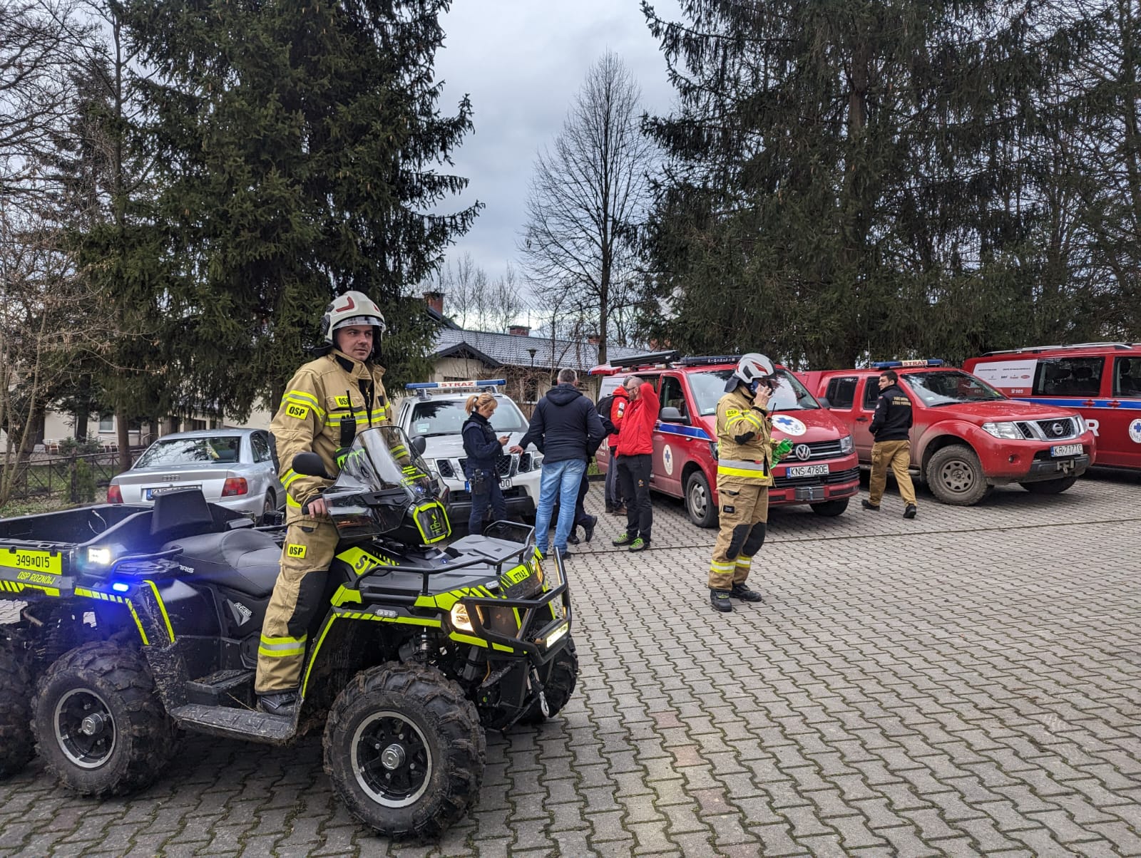14 marca o godzinie 12.44 zastępy PSP i OSP zadysponowane zostały do poszukiwań Zbyszycach. Podczas dojazdu na miejsce zdarzenia wyznaczono punkt koncentracji sił i środków na parkingu przy kościele Św. Bartłomieja w Zbyszycach. Jeden zastęp PSP oraz OSP Tęgoborze udały się bezpośrednio do miejsca wodowania łodzi w Tęgoborzy. W miejscu koncentracji przeprowadzono odprawę z uczestnikami poszukiwań. Policja przekazała informacje o poszukiwanej osobie, którą była 40 letnia kobieta, pensjonariuszka DPS. Policja oraz personel prowadziły już wcześniej poszukiwania. Poszukiwania prowadzono na jeziorze Rożnowskim przy wykorzystaniu trzech łodzi. Przeszukano teren wzdłuż linii brzegowej na odcinku około 4 km. Przeszukano tereny leśne wokół DPS. Przeszukano domki letniskowe, tereny leśne oraz brzegowe w okolicach DPS na powierzchni około 100 ha. Dodatkowo teren przeszukano przy użyciu drona z kamerą termowizyjna. Po czterech godzinach decyzją Policji, zakończono poszukiwania, nie odnajdując osoby poszkodowanej.
