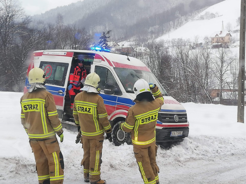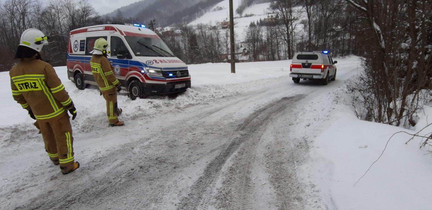 Na Sądecczyźnie mamy trudne warunki zimowe dlatego też 12 lutego strażacy z JRG nr 1 i 2 w Nowym Sączu oraz OSP Królowa Górna pomagali dwa razy Pogotowiu Ratunkowemu w dotarciu do osób potrzebujących pomocy. Pierwszy raz około godziny 11.50 w Żeleźnikowej Wielkiej. Tam ustalono, że ratownicy medyczni potrzebowali pomocy w dojeździe do trudno dostępnego miejsca gdzie znajdował się chory pacjent. Strażacy dowieźli załogę pogotowia do wyznaczonego budynku. Po zbadaniu pacjenta ratownik medyczny stwierdził, że mężczyzna wymaga transportu do szpitala ze względu na bezpośrednie zagrożenie życia. Ewakuowano pacjenta wraz z załoga do karetki pogotowia, która znajdowała się na parkingu obok kościoła. Kolejnej pomocy ratownicy Pogotowia ratunkowego potrzebowali około godziny 15.00 w Kamionce Wielkiej, tam stwierdzono, że Zespół Ratownictwa Medycznego potrzebował pomocy w zwiezieniu pojazdem PSP dziecka w wieku 3 lat z domu do karetki. Z powodu znacznego wzniesienia i ośnieżenia drogi dojazdowej dojazd karetki do posesji był niemożliwy. Dziecko znajdowało się w domu pod opieką ratownika Pogotowia Ratunkowego. Strażacy zwieźli dziecko oraz matkę do karetki oddalonej od budynku mieszkalnego. To nie jedyne przypadki pomocy sądeckich strażaków w dotarciu do poszkodowanych ratownikom Pogotowia Ratunkowego.