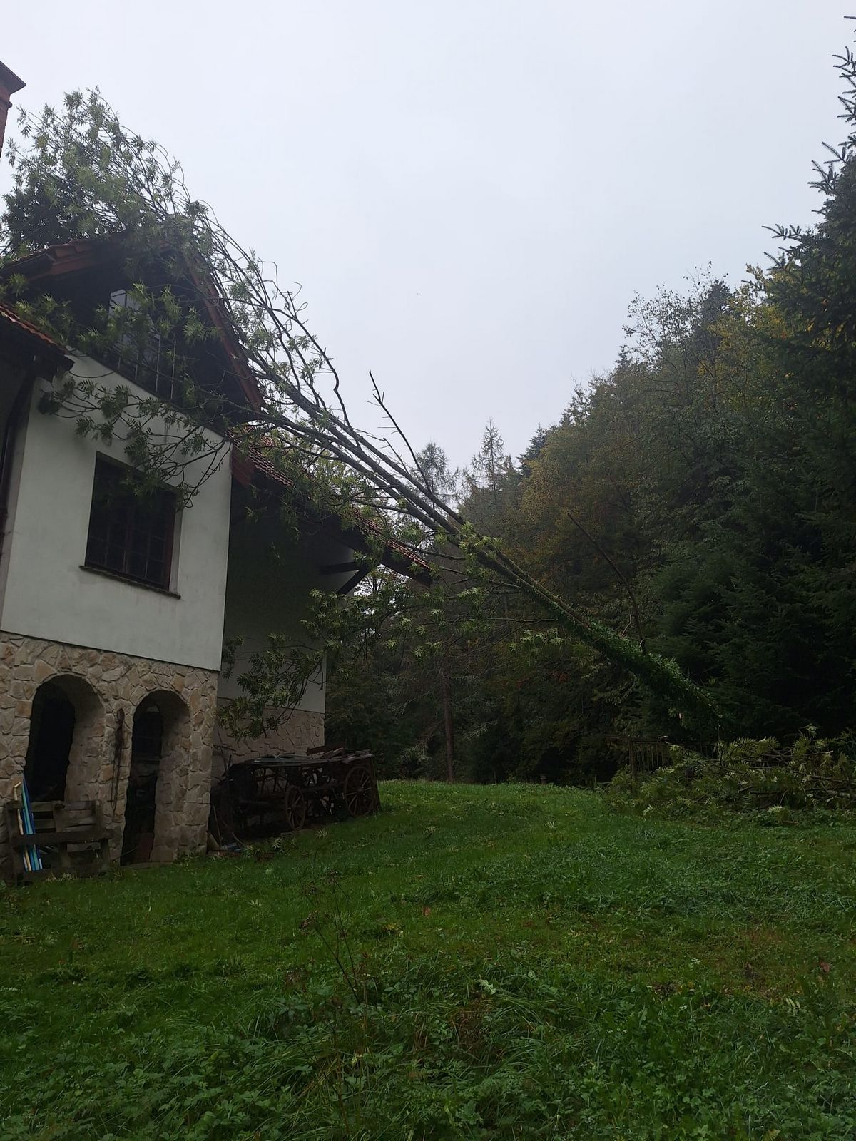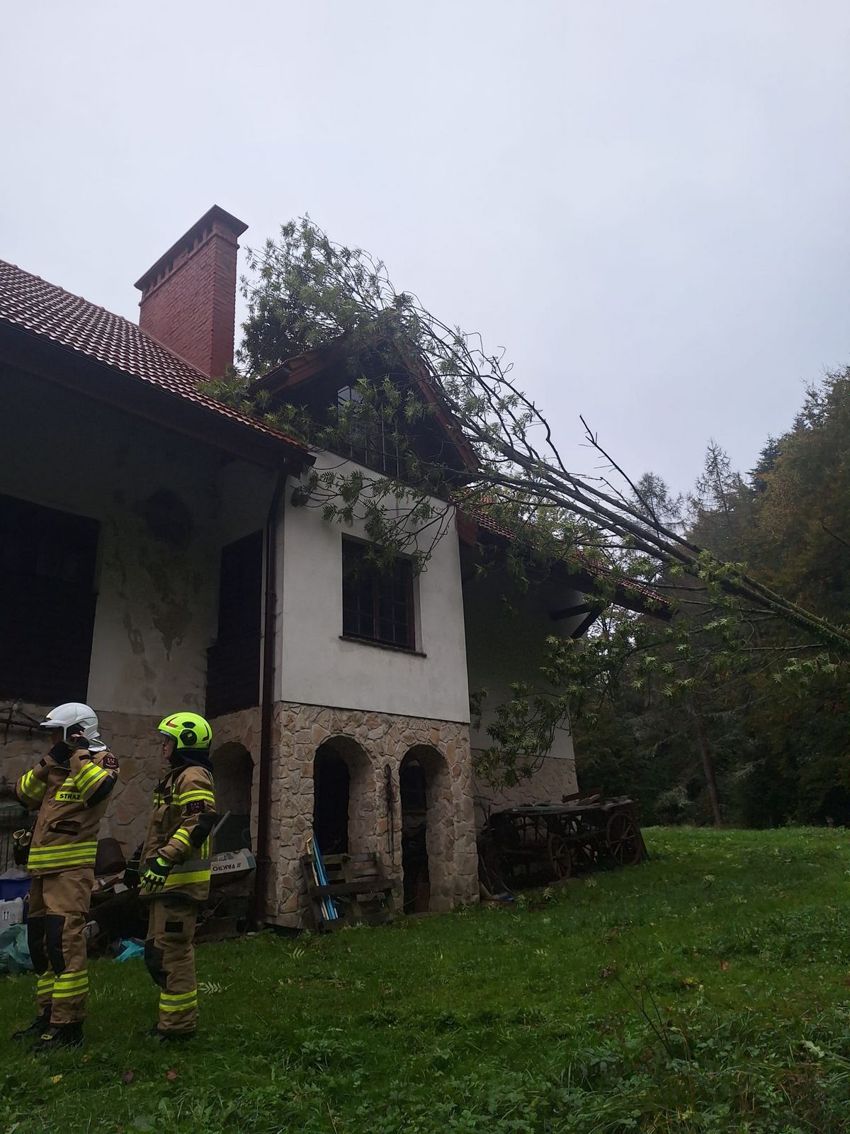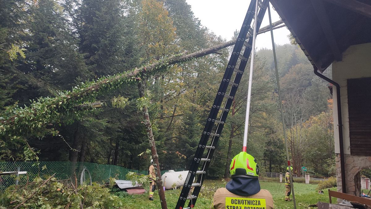 5 października o godzinie 14.49 zastęp z OSP Nawojowa zadysponowany został do działań w Złotnym. Po przybyciu na miejsce zdarzenia stwierdzono, że w wyniku rozmoknięcia ziemi spowodowanego opadami deszczu doszło do pochylenia drzewa i oparciu się przez nie o dach budynku mieszkalnego. Działania strażaków polegały na zabezpieczeniu miejsca zdarzenia wycięciu drzewa, wykorzystując w działaniach drabinę przystawną oraz pilarkę do ciecia drewna. Działania strażaków trwały ponad godzinę.
