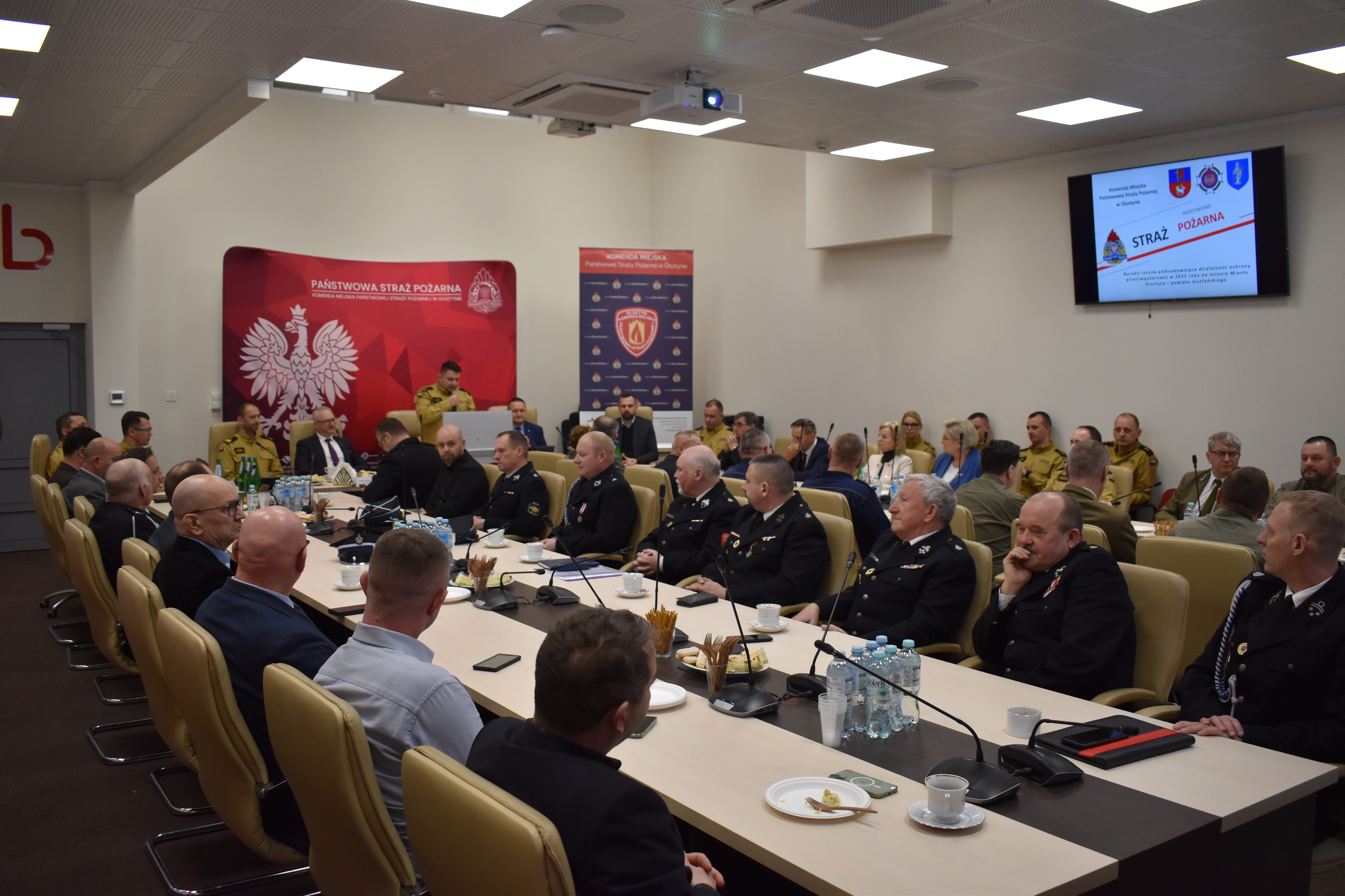 Podczas narady Komendant Miejski PSP w Olsztynie, bryg. Łukasz Jasiński przedstawił w formie prezentacji multimedialnej informacje dotyczące działalności KM PSP w Olsztynie w roku 2025 oraz nakreślił główne kierunki działań i cele wyznaczone na rok 2026. Tematyka dot. między innymi statystyki wyjazdowej działań podejmowanych przez strażaków, działalności: operacyjno-szkoleniowej, prewencyjnej, finansowej, kadrowej, logistycznej oraz przedsięwzięć inwestycyjnych. Skierował także słowa podziękowania dla władz samorządowych, dziękując za całoroczną współpracę oraz otrzymane wsparcie finansowe.