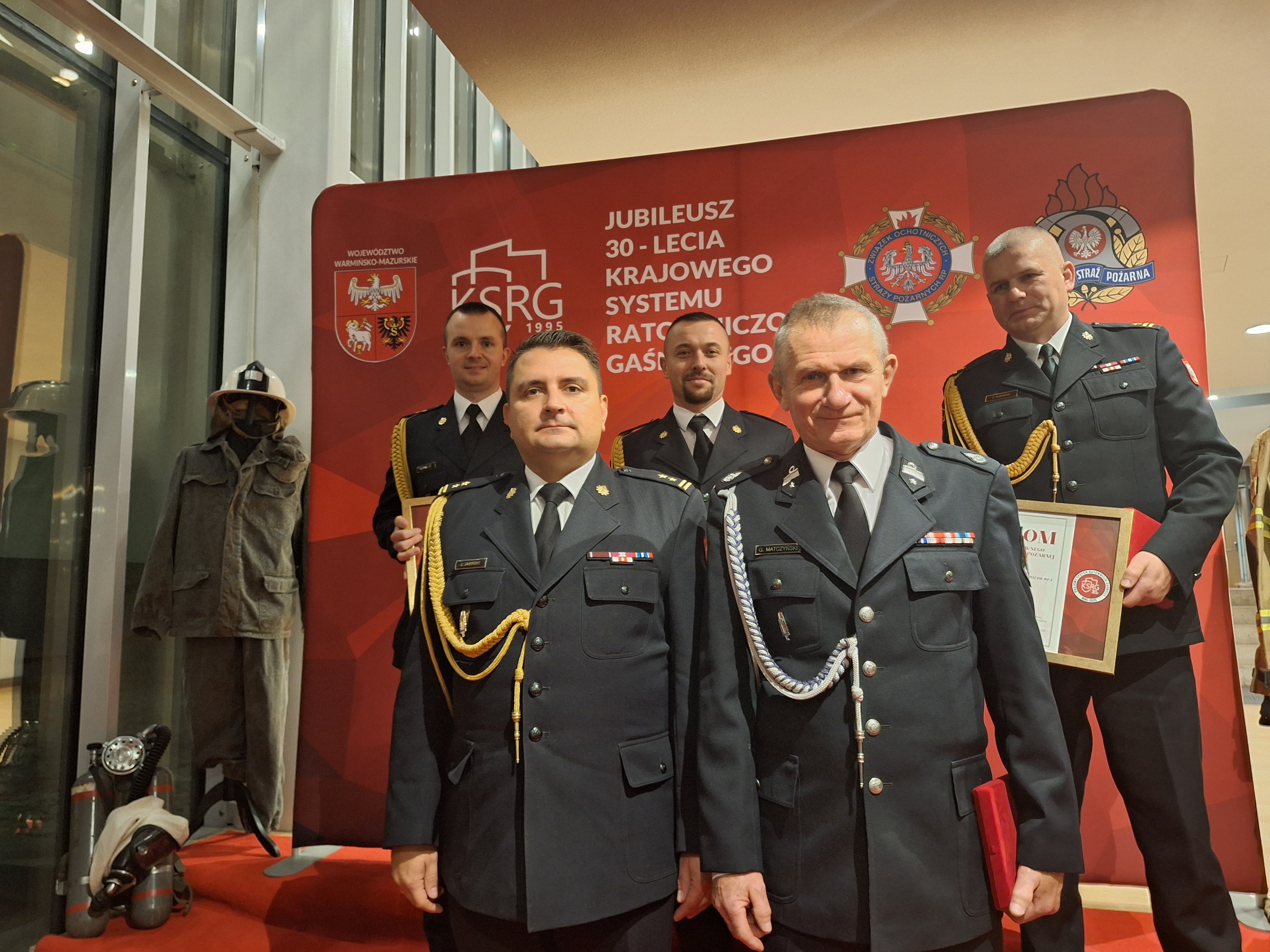 Podczas gali Komendant Miejski PSP wraz z Dowódcami JRG oraz przedstawicielami Jednostek Ochotniczych Straży Pożarnych z terenu powiatu olsztyńskiego, które zostały włączone do systemu KSRG w 1995 roku, otrzymali pamiątkowe dyplomy i medale.