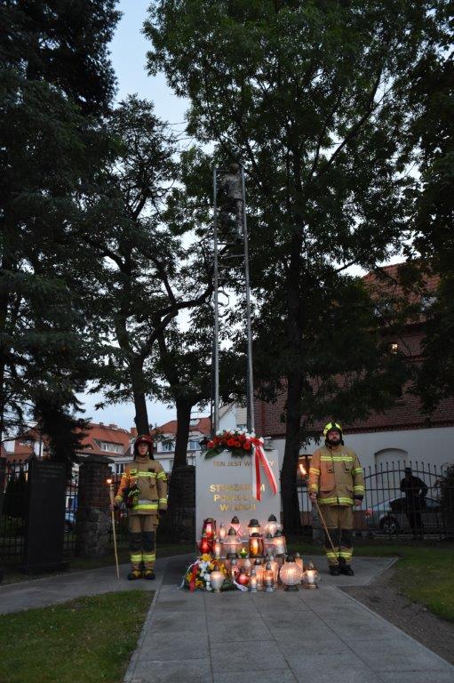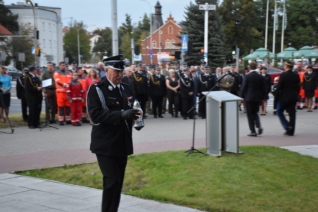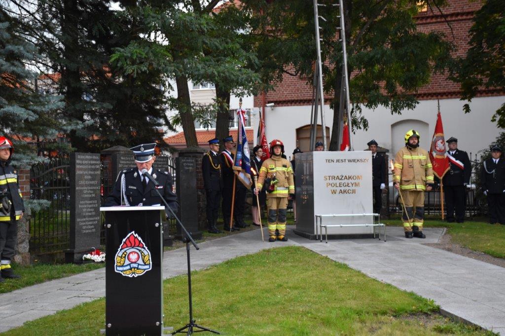 W uroczystości udział wzięli: Pan Artur Chojecki – Wojewoda Warmińsko-Mazurski, Pan Gustaw Marek Brzezin – Marszałek Województwa Warmińsko-Mazurskiego i Prezes ZOW ZOSP RP, nadbryg. Tomasz Komoszyński – Warmińsko-Mazurski Komendant Wojewódzki PSP, przedstawiciele władz samorządowych oraz służb mundurowych i instytucji współpracujących ze strażakami na co dzień, rodziny strażaków poległych i tragicznie zmarłych. Pod pomnikiem zostały złożone kwiaty i zapalone znicze.