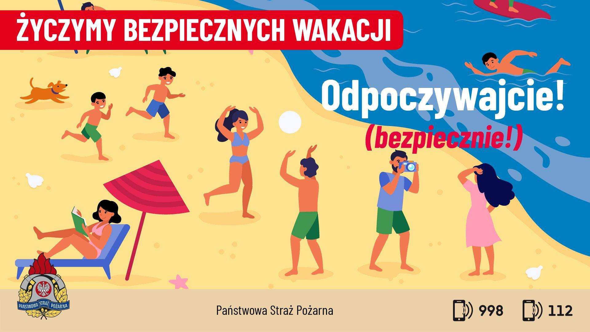 Wakacje to czas odpoczynku, relaksu i zabawy. Pamiętajmy, że to przede wszystkim od nas zależy, czy będą one bezpieczne, a tym samym udane. Dlatego niezależnie od miejsca, w którym je spędzamy, zachowujmy się odpowiedzialnie, pamiętając o podstawowych zasadach bezpieczeństwa.