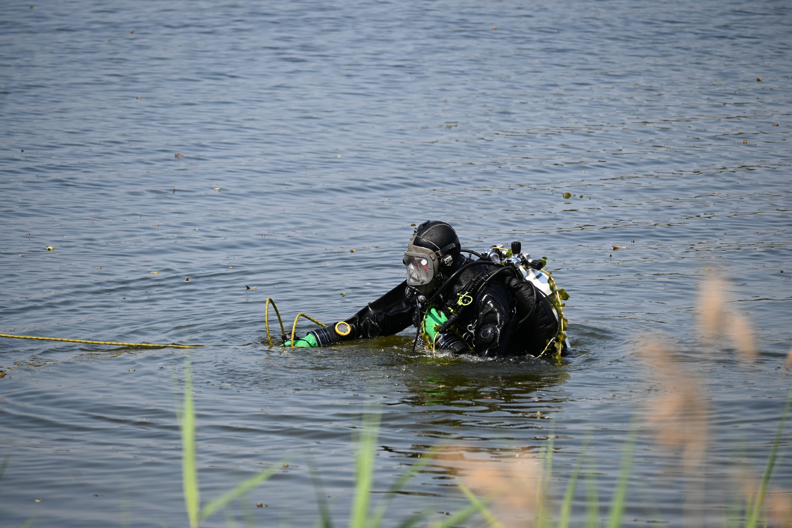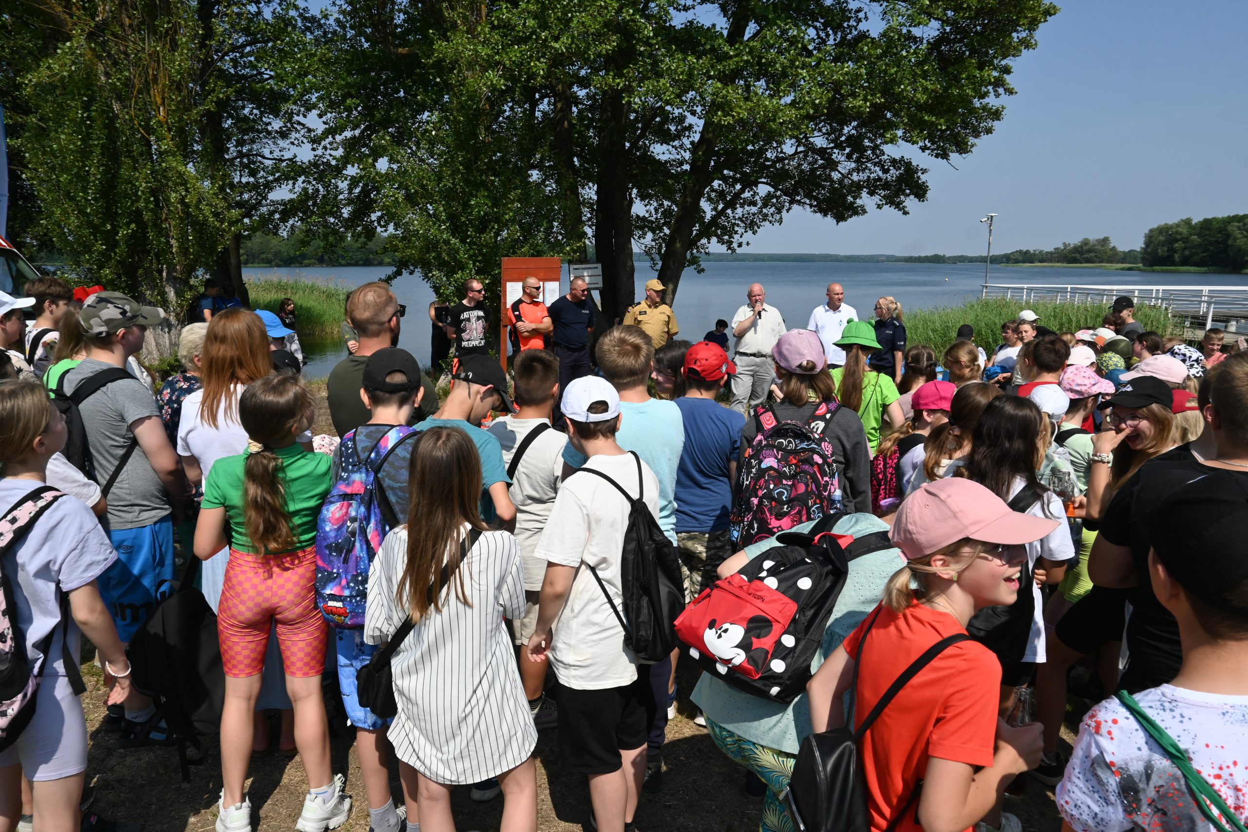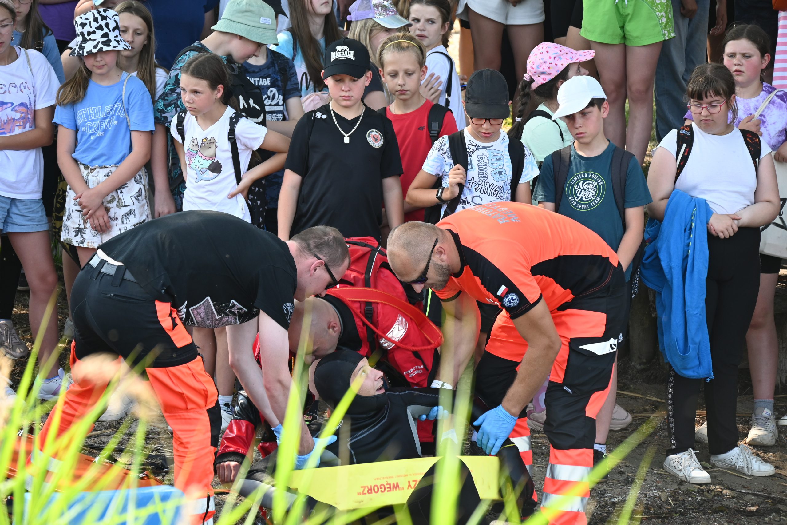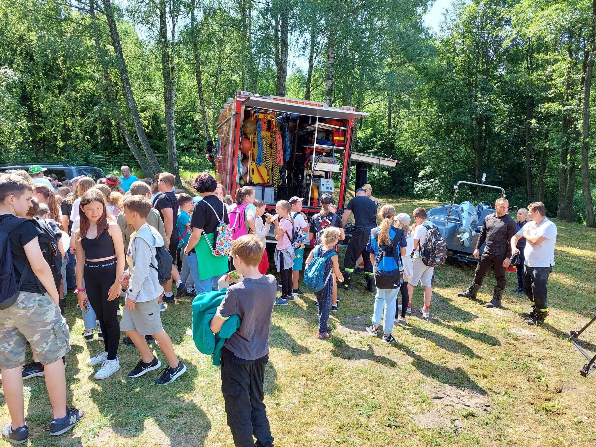 Nasi strażacy ze Specjalistycznej Grupy Ratownictwa Wodno – Nurkowego działającej w JRG2 Olsztyn przy wsparciu strażaków z OSP zaprezentowali sposób prowadzenia poszukiwań osoby pod wodą oraz pokaz działań w sytuacji podjęcia poszkodowanego, który wypadł z łódki.
