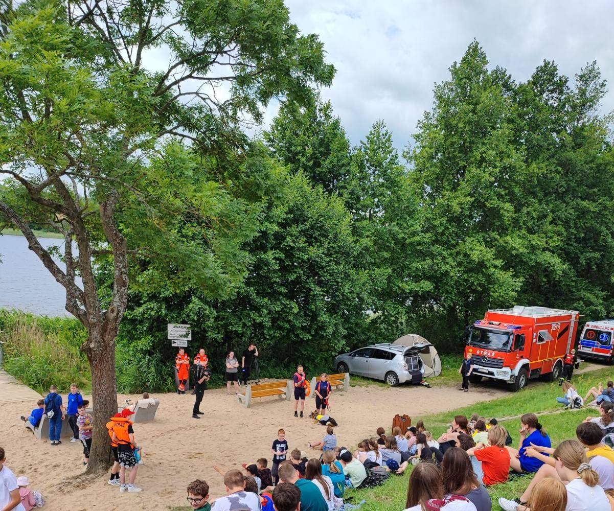 Dzięki funkcjonariuszom Komendy Miejskiej Policji w Olsztynie, Komendy Miejskiej Państwowej Straży Pożarnej w Olsztynie oraz jednostek Ochotniczej Straży Pożarnej dzieci miały możliwość obejrzenia pokazów ratownictwa wodnego, a także wysłuchać rad dotyczących zasad zachowania się i spędzania czasu nad wodą.