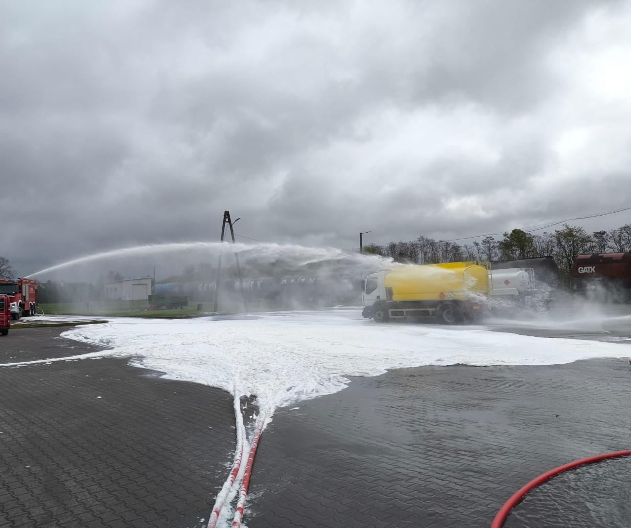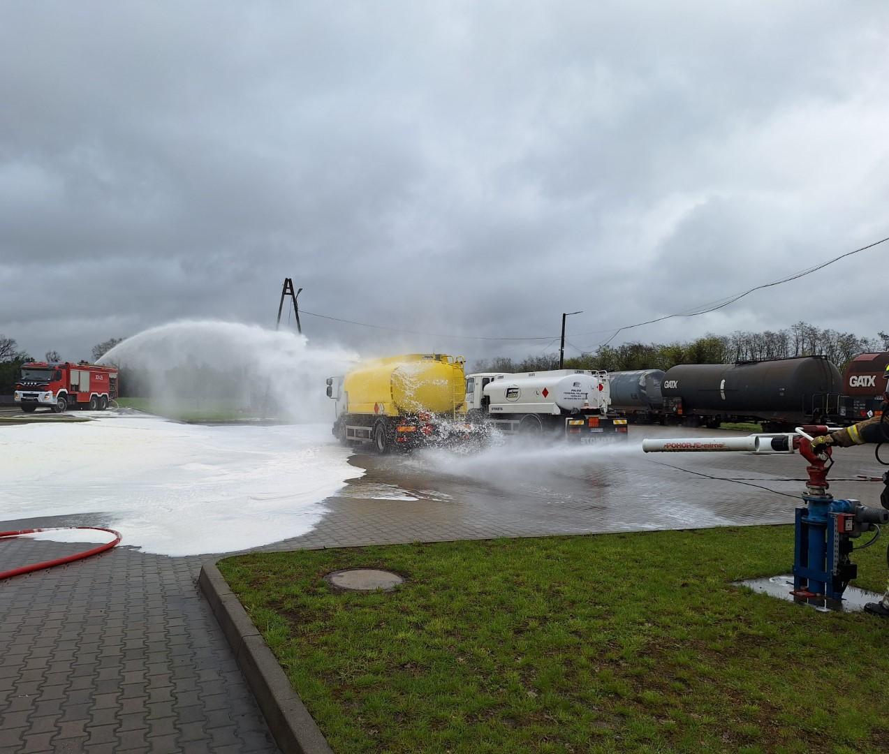 Ostatnim elementem było zapoznanie się z obiektem, usytuowaniem hydrantów, procedurami wewnętrznymi zakładu na wypadek powstania zagrożenia oraz ze specyfiką procesów technologicznych realizowanych podczas rozładunku oraz magazynowania materiałów ropopochodnych.