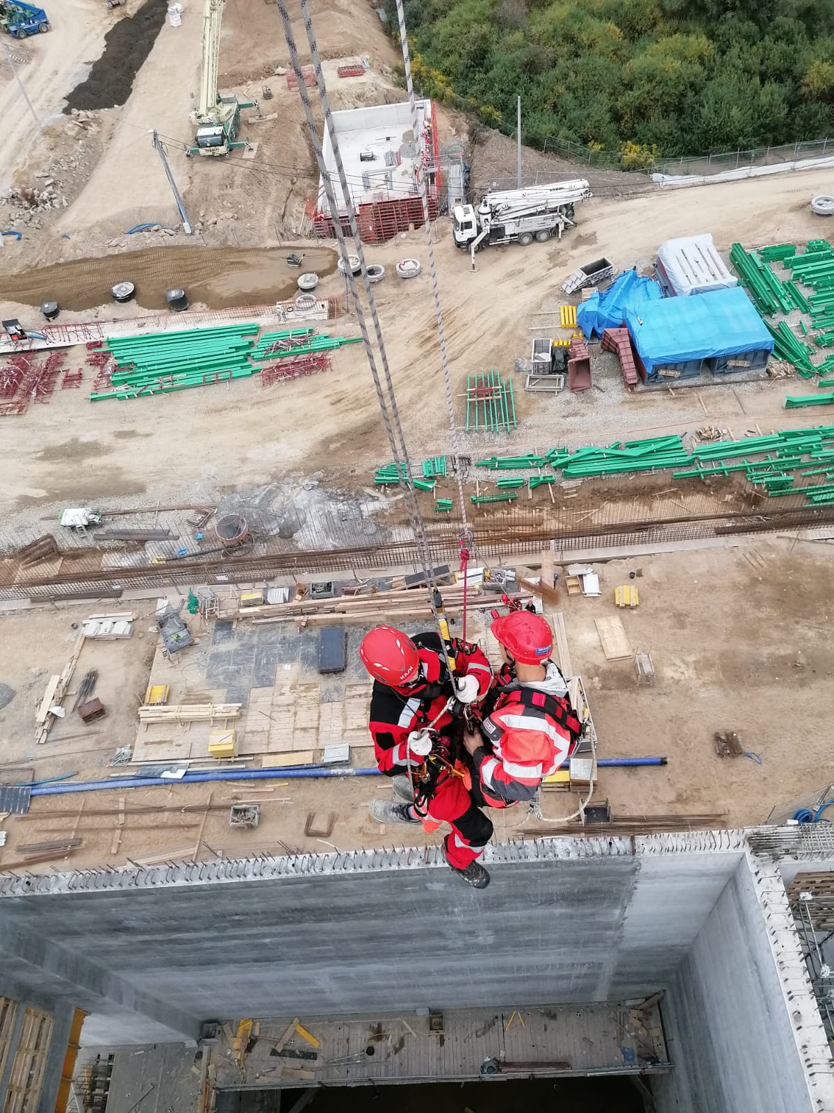 W dniach 13 – 15.09.2021 roku na trzech zmianach służbowych odbyły się ćwiczenia Specjalistycznej Grupy Ratownictwa Wysokościowego „Olsztyn” na żurawiu wieżowym firmy STRABAG sp. z o.o. Budowa WTE Olsztyn. Założenie obejmowało ewakuację dwóch pracowników firmy uwięzionych w specjalnym koszu podczepionym do haka żurawia (awaria żurawia). Kosz znajdował się na wysokości ok. 35 m. Ze względu na brak możliwości użycia specjalistycznego sprzętu bezpieczną ewakuację przeprowadzono z wykorzystaniem technik linowych.