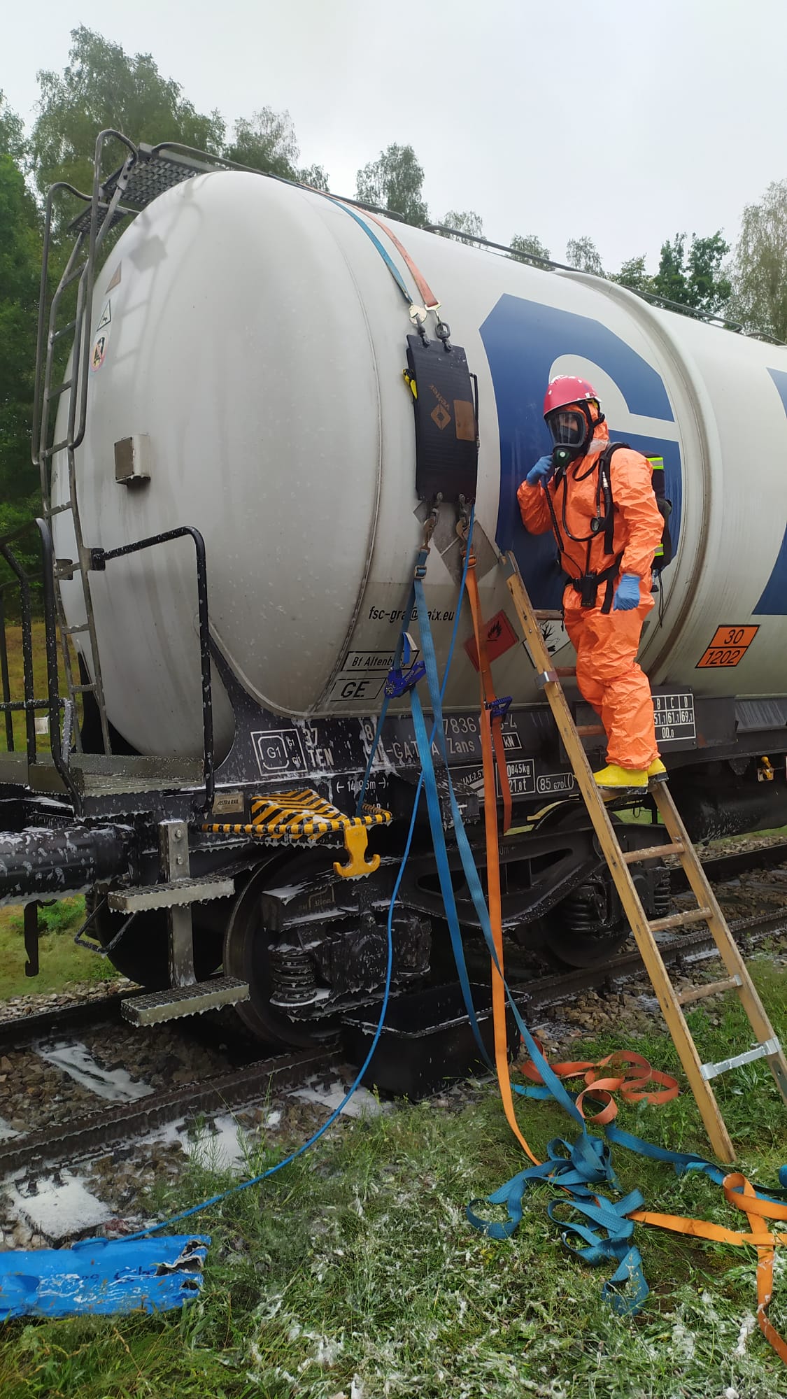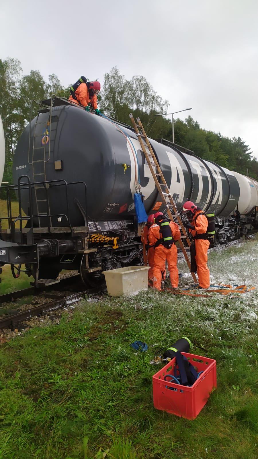 chemiczno-ekologicznego SGRChem-Eko Olsztyn z JRG1 Olsztyn. Podczas dostawy paliwa do bazy magazynowej doszło do rozszczelnienia płaszcza zbiornika cysterny kolejowej
