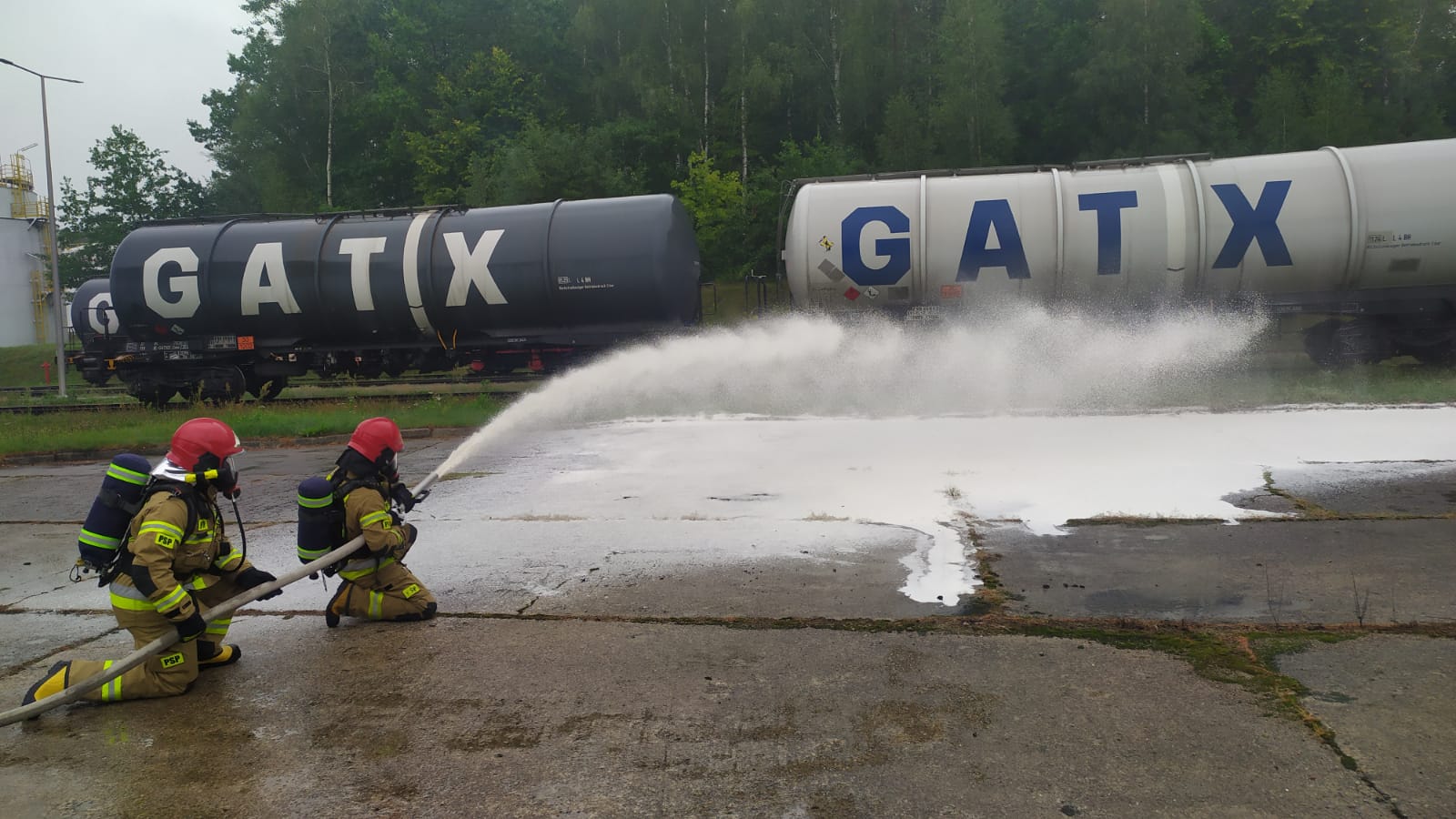- chłodzeniu ścian zbiornika, w którym doszło do pożaru,