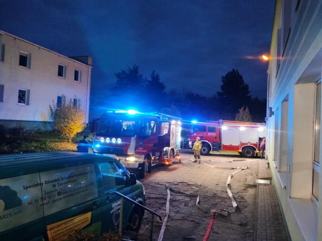 W czwartek 31 października na terenie Specjalnego Ośrodka Szkolno – Wychowawczego w Żardenikach odbyły się ćwiczenia. Założeniem ćwiczeń był pożar pokoju na pierwszym piętrze w internacie. Celem ćwiczeń było doskonalenie umiejętności pracy w zadymieniu, ewakuacja osób poszkodowanych, przeszukiwania pomieszczeń, prowadzenie linii gaśniczej wewnątrz obiektu oraz organizacja własnego zaopatrzenia wodnego. W ćwiczeniach brały udział strażacy z OSP Jeziorany oraz JRG Biskupiec.