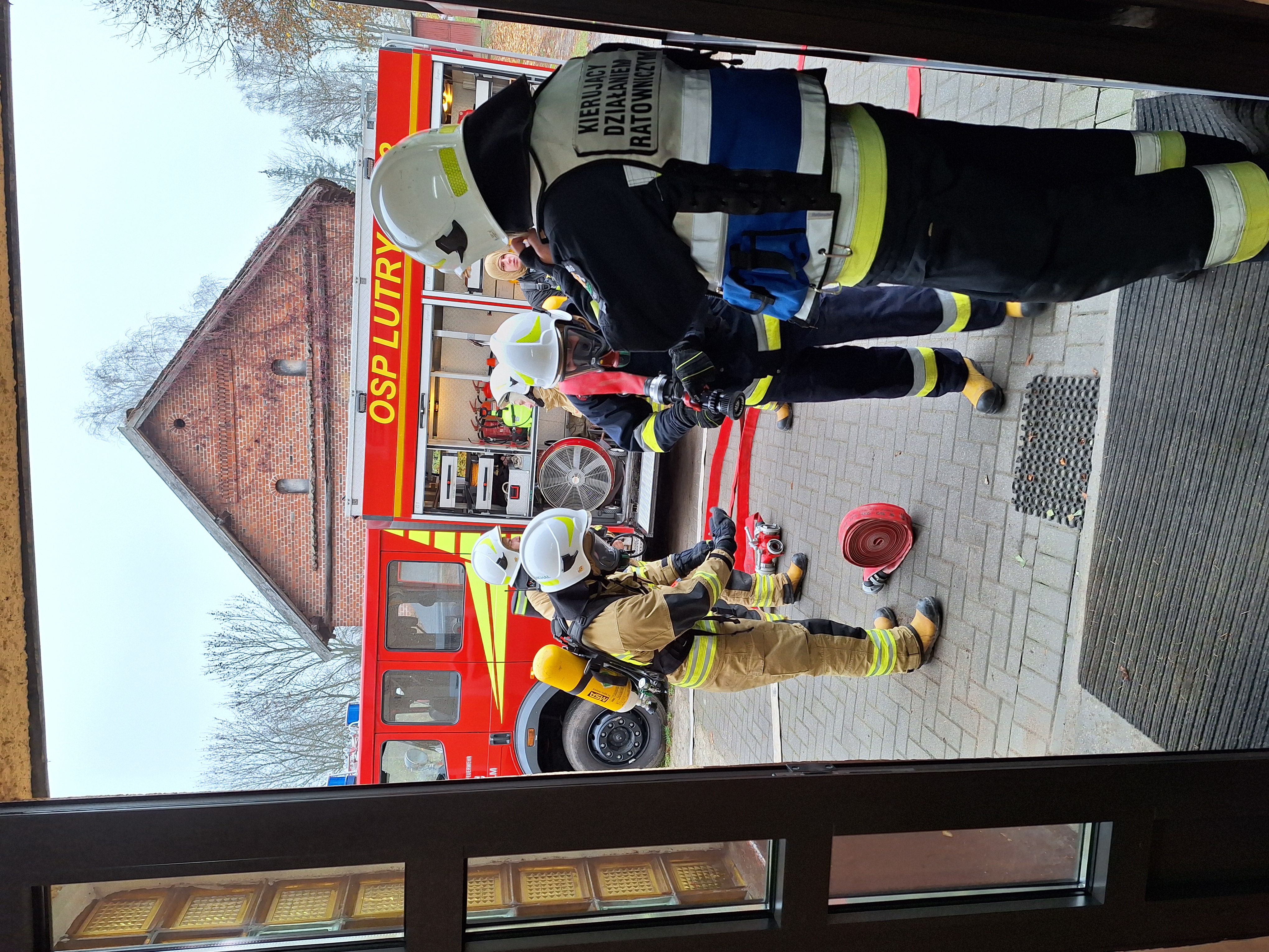 w Lutrach. Ćwiczenia połączone były z praktyczną ewakuacją całego obiektu. Celem ćwiczeń było doskonalenie umiejętności pracy ratowników w zadymieniu, ewakuacja osób poszkodowanych, przeszukiwanie pomieszczeń, prowadzenie linii gaśniczej wewnątrz obiektu oraz organizacja własnego zaopatrzenia wodnego. W ćwiczeniach udział brała jednostka OSP Lutry oraz dwa zastępy z JRG Biskupiec. Ćwiczenia przebiegły sprawnie, a wszystkie postawione cele zostały osiągnięte.