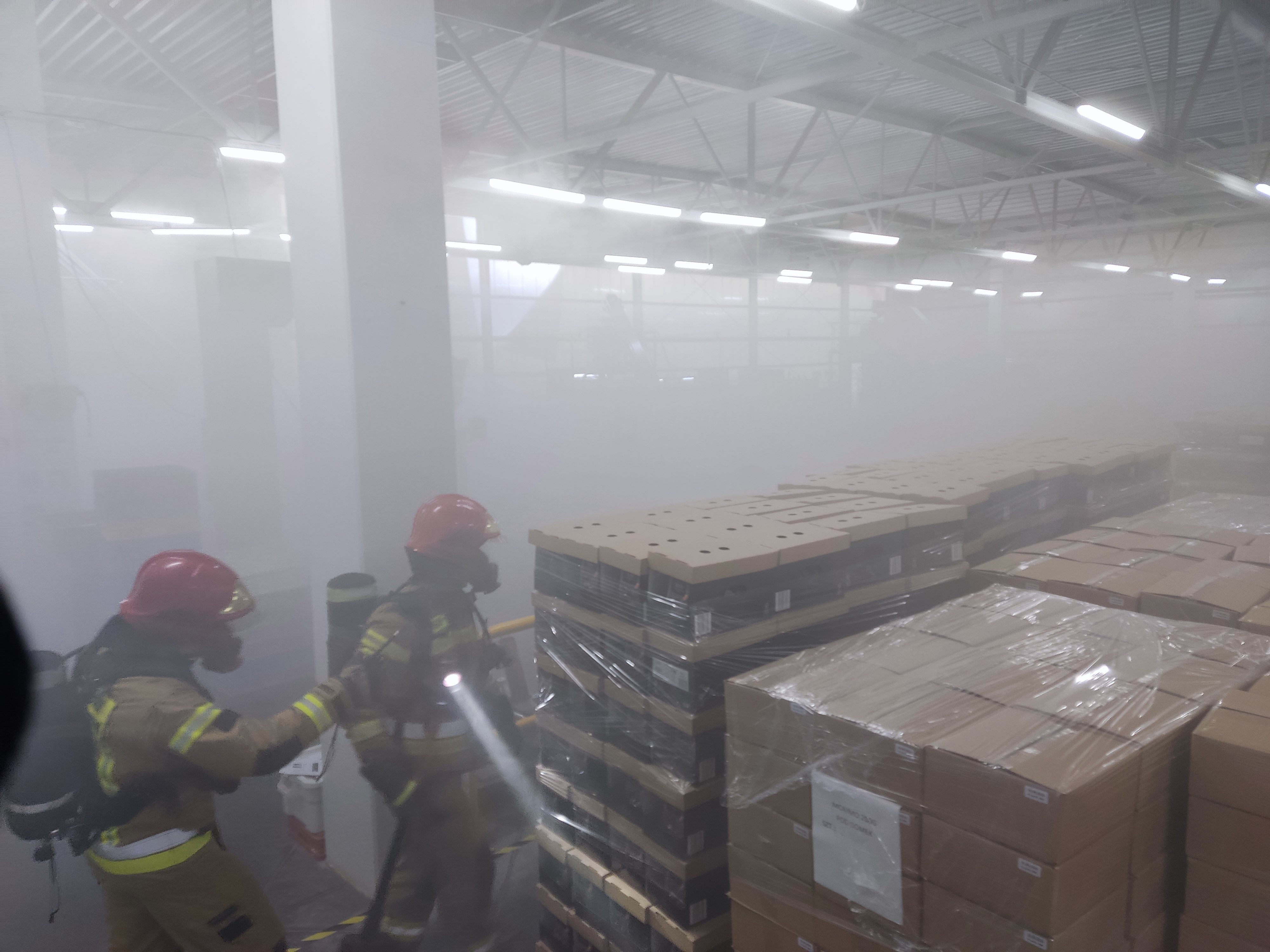W poniedziałek 19 lutego br. odbyły się ćwiczenia strażaków JRG 2 Olsztyn oraz druhów jednostki OSP Dobre Miastona terenie zakładu Jutrzenka Dobre Miasto Sp. z o.o., który zajmuje się produkcją słodyczy. Celem głównym ćwiczeń było przygotowanie strażaków do skutecznego i bezpiecznego prowadzenia działań ratowniczo-gaśniczych w budynkach ZL III- część biurowa oraz PM – część hal produkcyjno-magazynowych. Założeniem ćwiczeń była lokalizacja i ugaszenie pożaru rozwijającego się w hali magazynowej, przeszukanie terenu i ewakuacja osób poszkodowanych, udzielenie kwalifikowanej pomocy medycznej i przekazanie poszkodowanego zespołowi ratownictwa medycznego, oddymienie budynku, zapewnienie odpowiedniego zaopatrzenia wodnego z sieci hydrantowej do pojazdów gaśniczych. Ćwiczenia przebiegły sprawnie, a wszystkie postawione cele zostały osiągnięte. Ostatnim elementem ćwiczeń było obejście obiektu przez uczestniczących w ćwiczeniach strażaków, w celu zapoznania się z rozkładem budynków na terenie zakładu, potencjalnymi zagrożeniami które mogą wystąpić, wyposażeniem w urządzenia przeciwpożarowe, co może wpłynąć na efektywność prowadzonych działań ratowniczo – gaśniczych w tego typu zakładach.