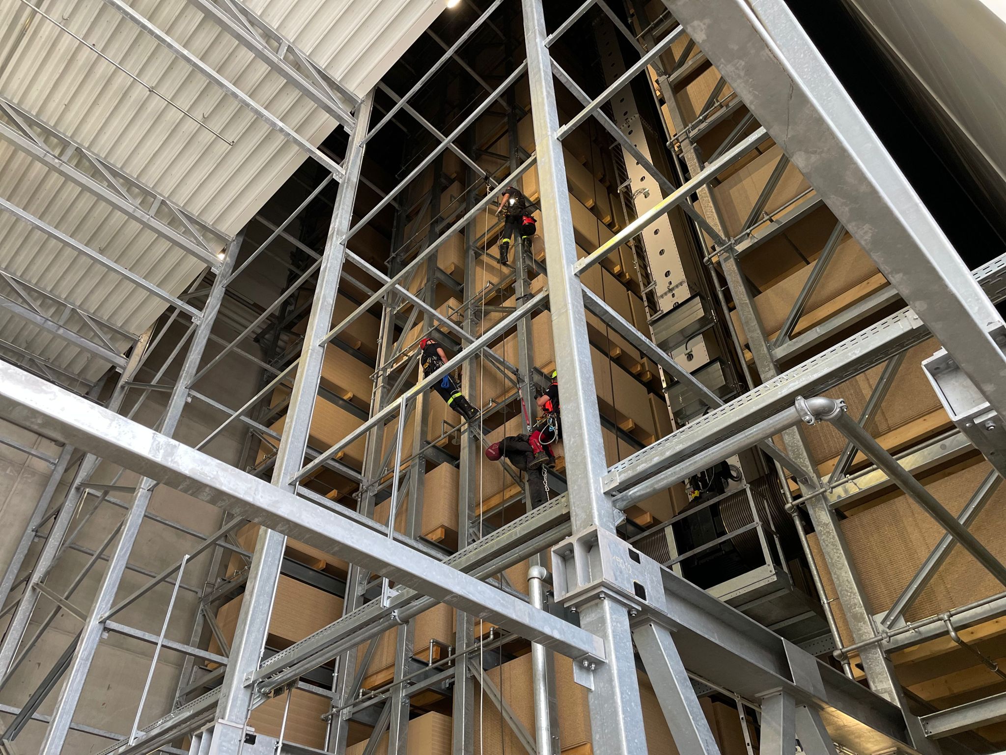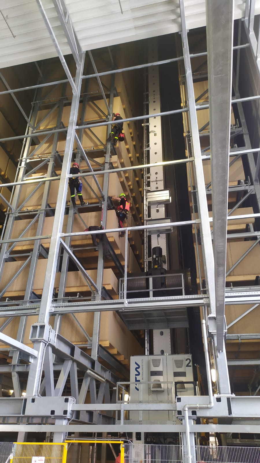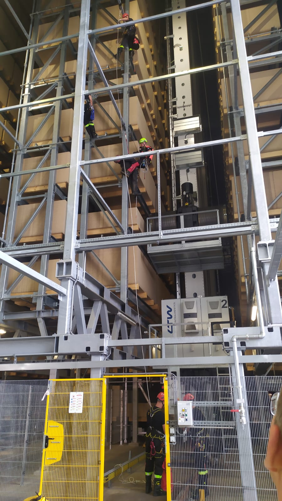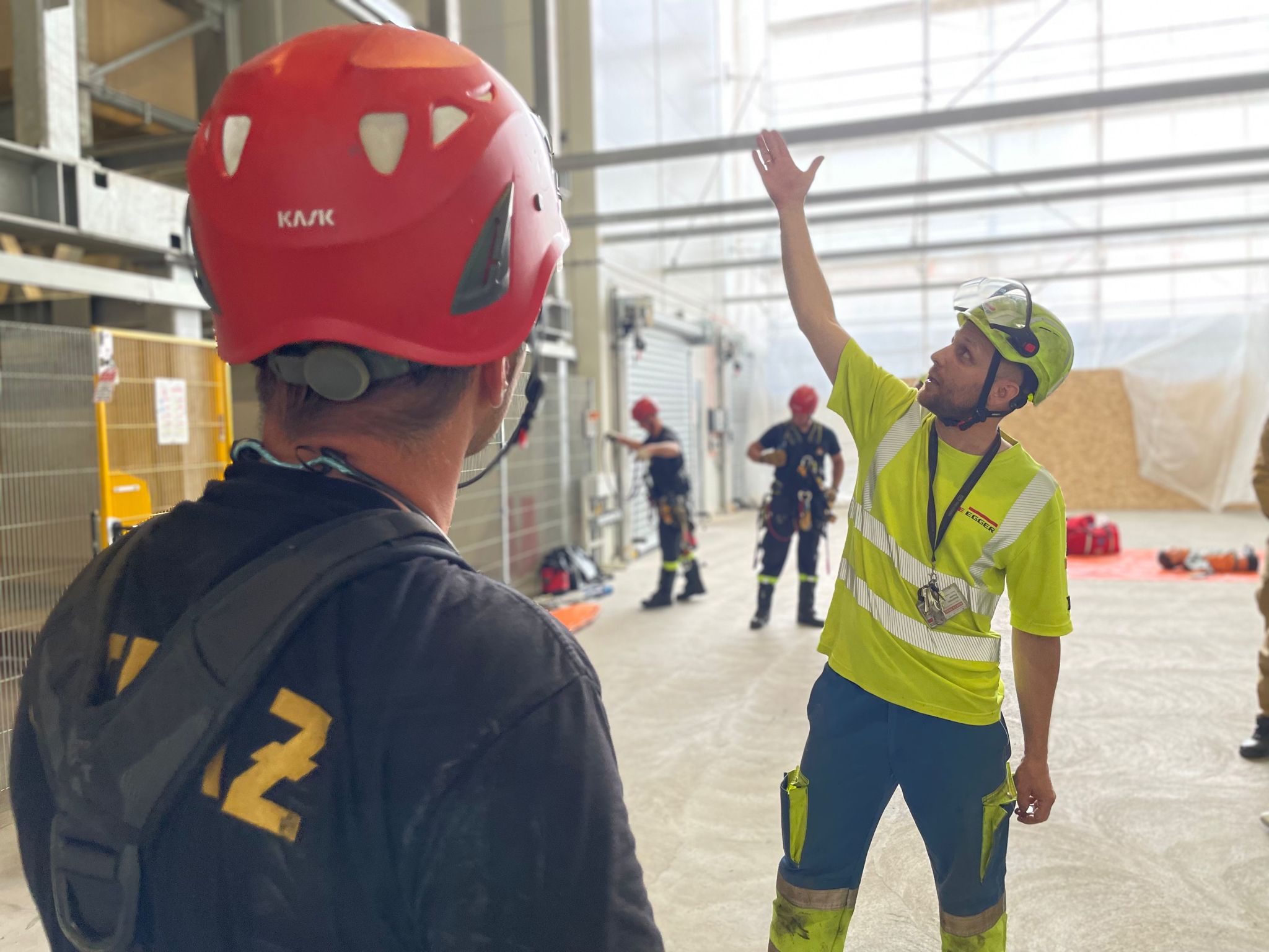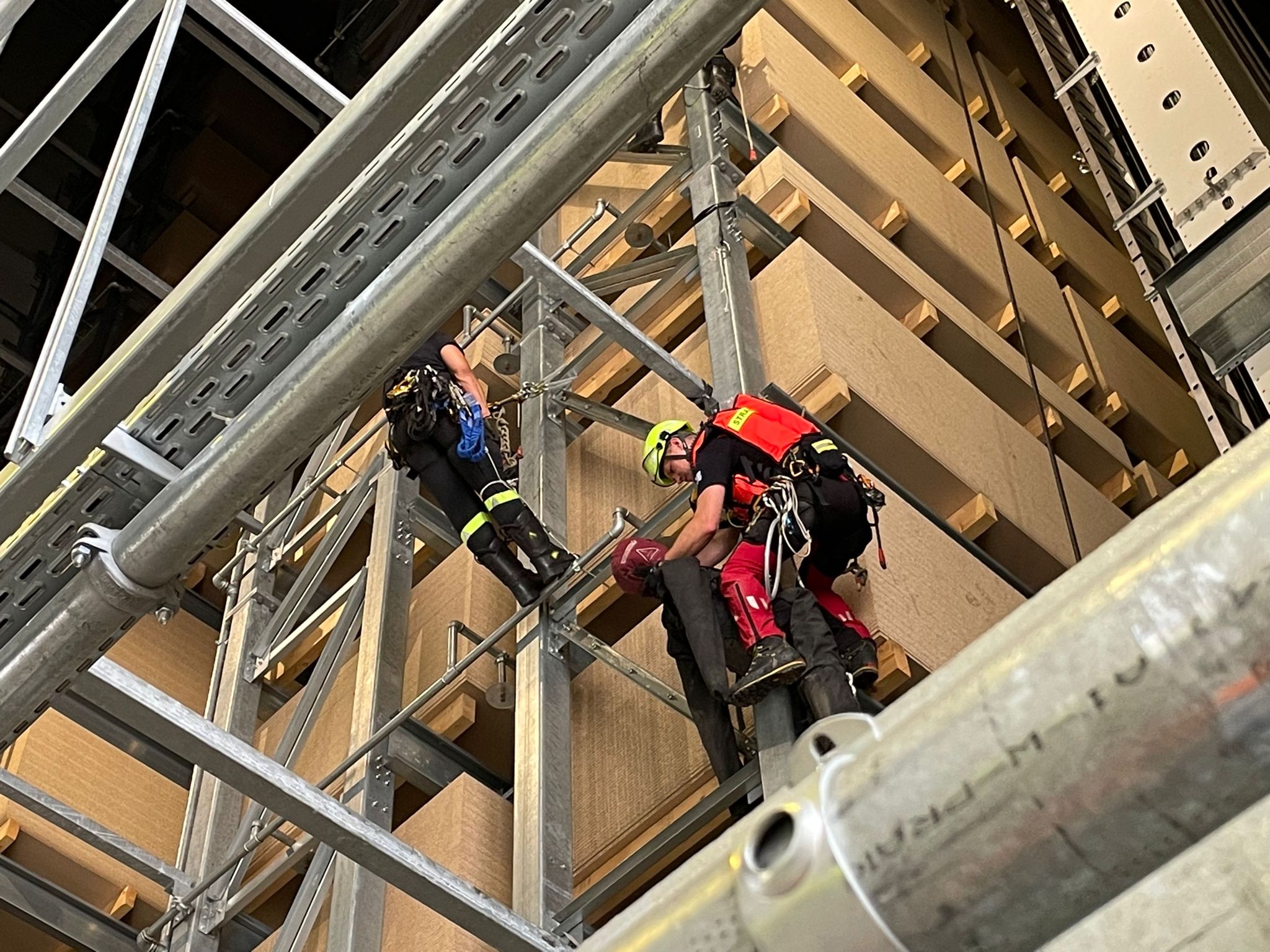 W dniu 05 lipca 2023 r. w zakładzie produkcyjnym EGGER w Biskupcu odbyły się ćwiczenia z zakresu ratownictwa wysokościowego. Scenariusz zakładał, że podczas prac konserwacyjnych w magazynie wysokiego składowania jeden z pracowników zasłabł na wysokości ok. 10 metrów. Nieprzytomny mężczyzna został podjęty przy pomocy technik alpinistycznych przez strażaków ze Specjalistycznej Grupy Ratownictwa Wysokościowego „Olsztyn”. Po sprowadzeniu poszkodowanego na ziemię, strażacy udzielili kwalifikowanej pierwszej pomocy w przygotowanym wcześniej punkcie medycznym, a następnie przekazali aplikacyjnie Zespołowi Ratownictwa Medycznego.