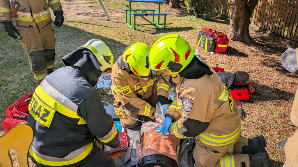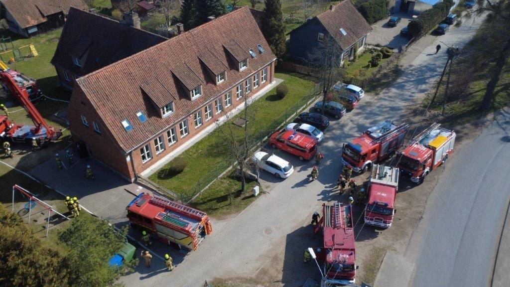 Koncentracja gminna jednostek OSP z gminy Jeziorany - ćwiczenia w Szkole Podstawowej w Radostowie