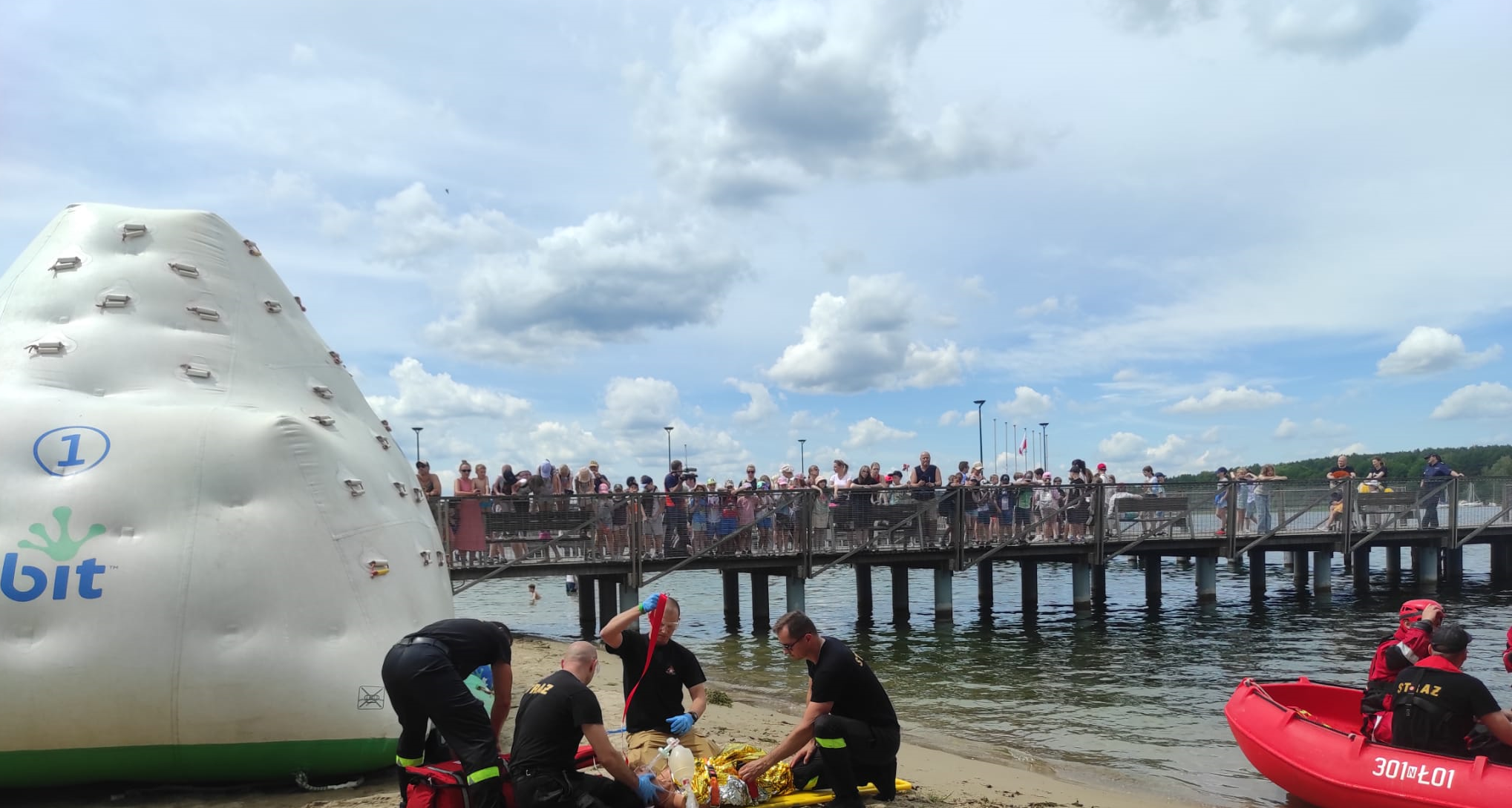 Na jeziorze Ukiel w Olsztynie, strażacy wspólnie z policjantami zaprezentowali pokaz z zakresu ratownictwa wodnego. Po podjęciu osób poszkodowanych z wody po przewróceniu się jednostek pływających, strażacy zaprezentowali działania z zakresu kwalifikowanej pierwszej pomocy.