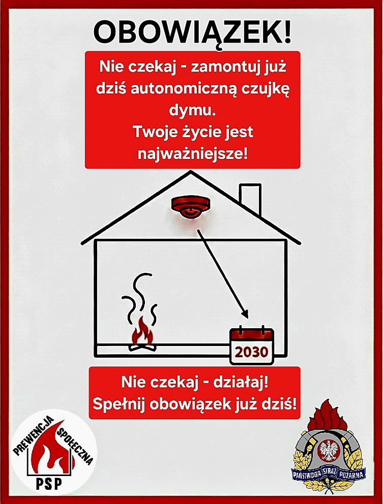 Zamontuj czujkę tlenku węgla i czujkę dymu. Dziś to rozsądek, a w 2030 roku to już obowiązek. Nie czekaj…już dziś zamontuj czujkę, za nim będzie za późno…