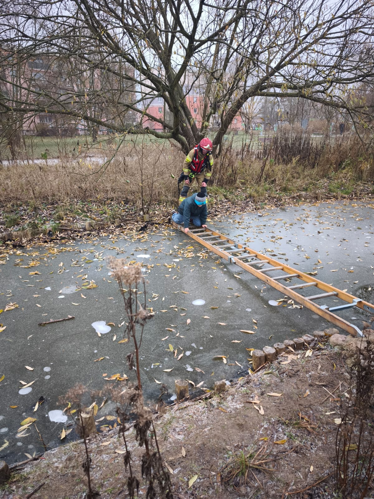 W dniu dzisiejszym, o godzinie 8:36 do Stanowiska Kierowania Komendanta Miejskiego Państwowej Straży Pożarnej w Olsztynie wpłynęła informacja, z treści której wynikało, że na wysepce osiedlowego stawu, którego tafla uległa zamarznięciu, znajduje się chłopiec, który nie jest w stanie samodzielnie wrócić na brzeg.