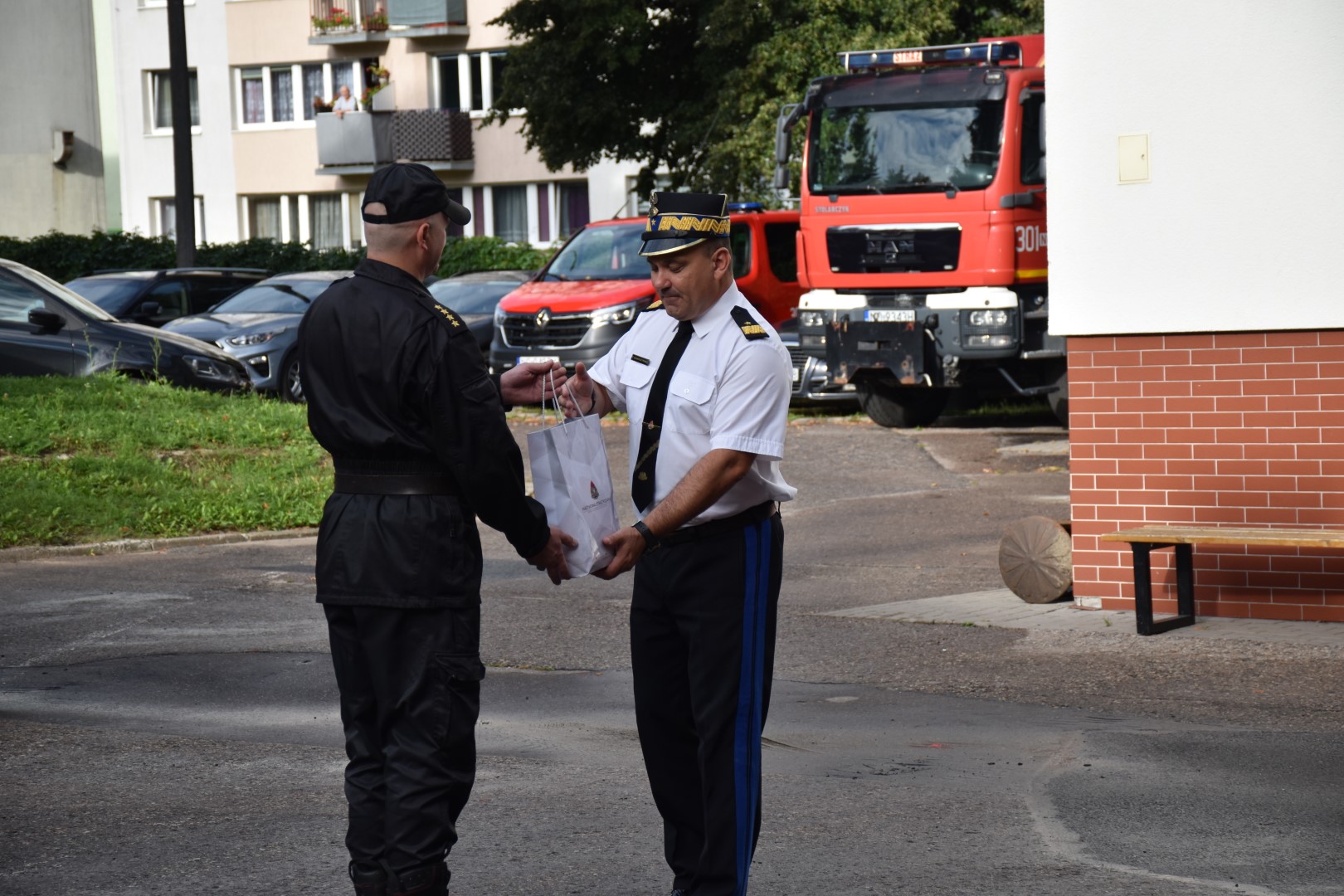 W uroczystej zmianie służby wzięli udział: Warmińsko-Mazurski Komendant Wojewódzki PSP nadbryg. Tomasz Komoszyński, Naczelnik Wydziału Organizacji i Nadzoru KW PSP Olsztyn st. bryg. Robert Fliciński oraz Komendant Miejski PSP w Olsztynie bryg. Jarosław Gryciuk wraz z zastępcami.
