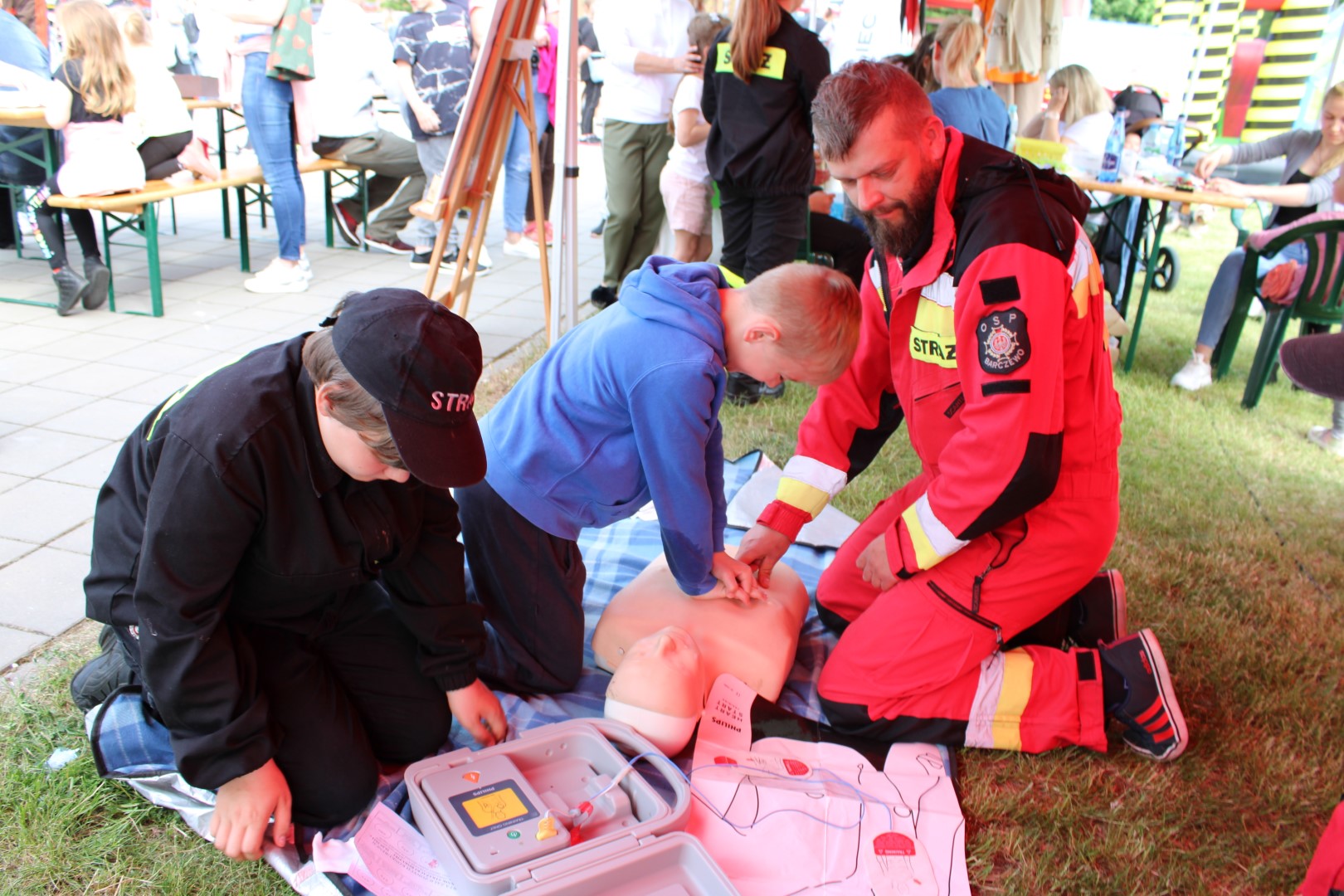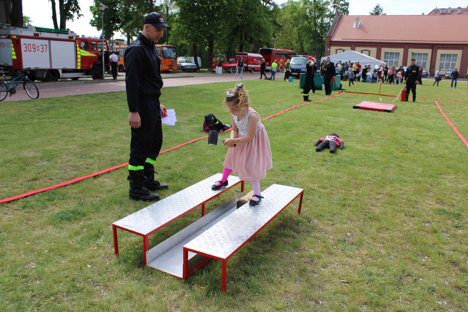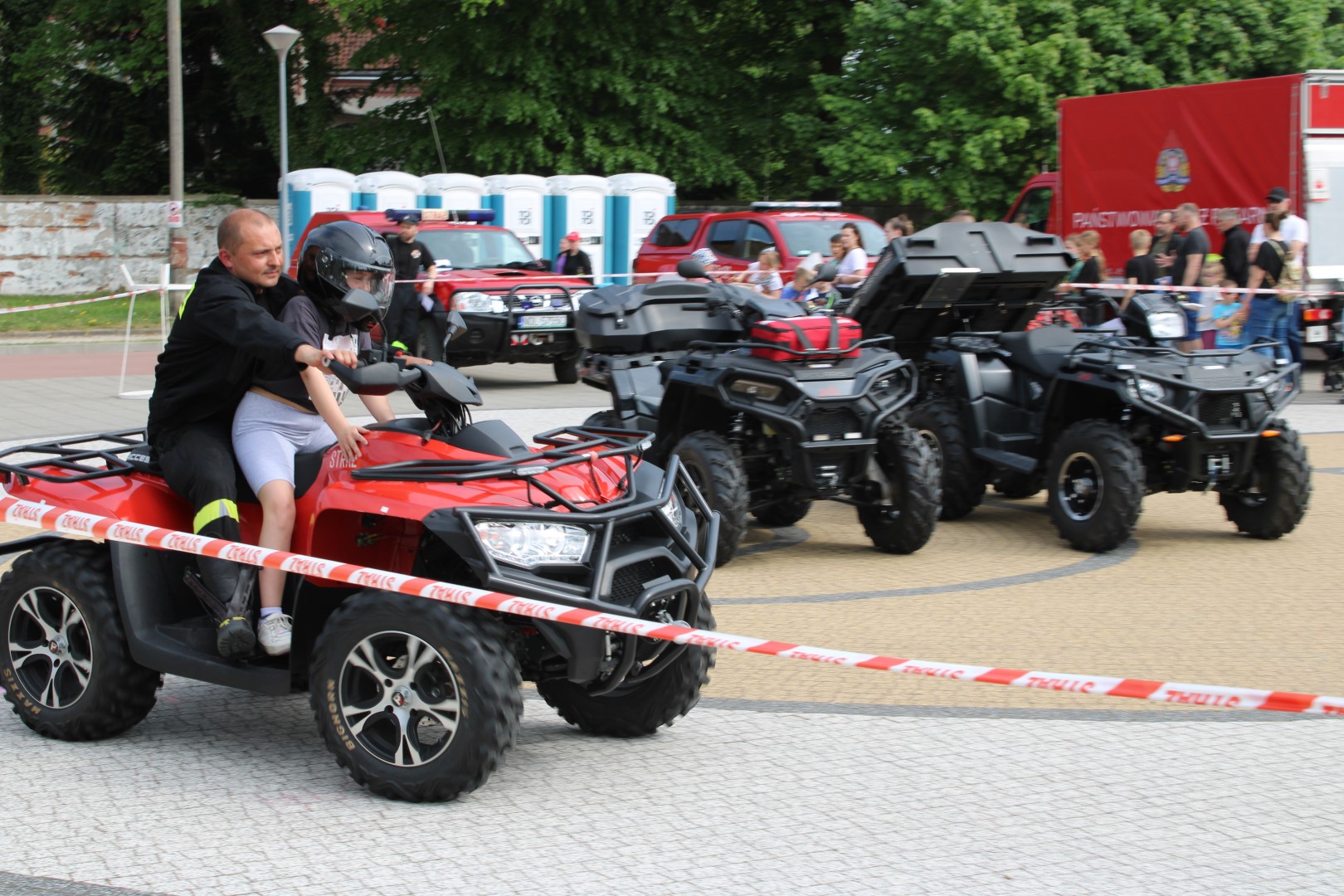 Po zakończeniu uroczystego apelu rozpoczął się rodzinny Powiatowy Piknik Strażacki, na którym przygotowane było wiele atrakcji, między innymi dmuchana zjeżdżalnia, malowanie twarzy, gry i zabawy oraz pokazy sprzętu i pojazdów strażackich. Najmłodsi uczestnicy wspólnie z rodzicami mogli poczuć się jak prawdziwi strażacy uczestnicząc w przygotowanych konkurencjach między innymi z zakresu ratownictwa technicznego, ratownictwa medycznego czy ratownictwa wysokościowego. Dzieci pokonywały również mini tor strażacki, miały możliwość przejazdu quadem oraz mogły gasić symulowane pożary gaśnicami oraz bawić się wodą celując do wyznaczonego celu. Dla osób, które ukończyło co najmniej sześć przygotowanych konkurencji strażackich czekał dyplom „Dzielnego Małego Strażaka”. Na placu apelowym w Biskupcu panowała iście wyjątkowa, rodzinna atmosfera.