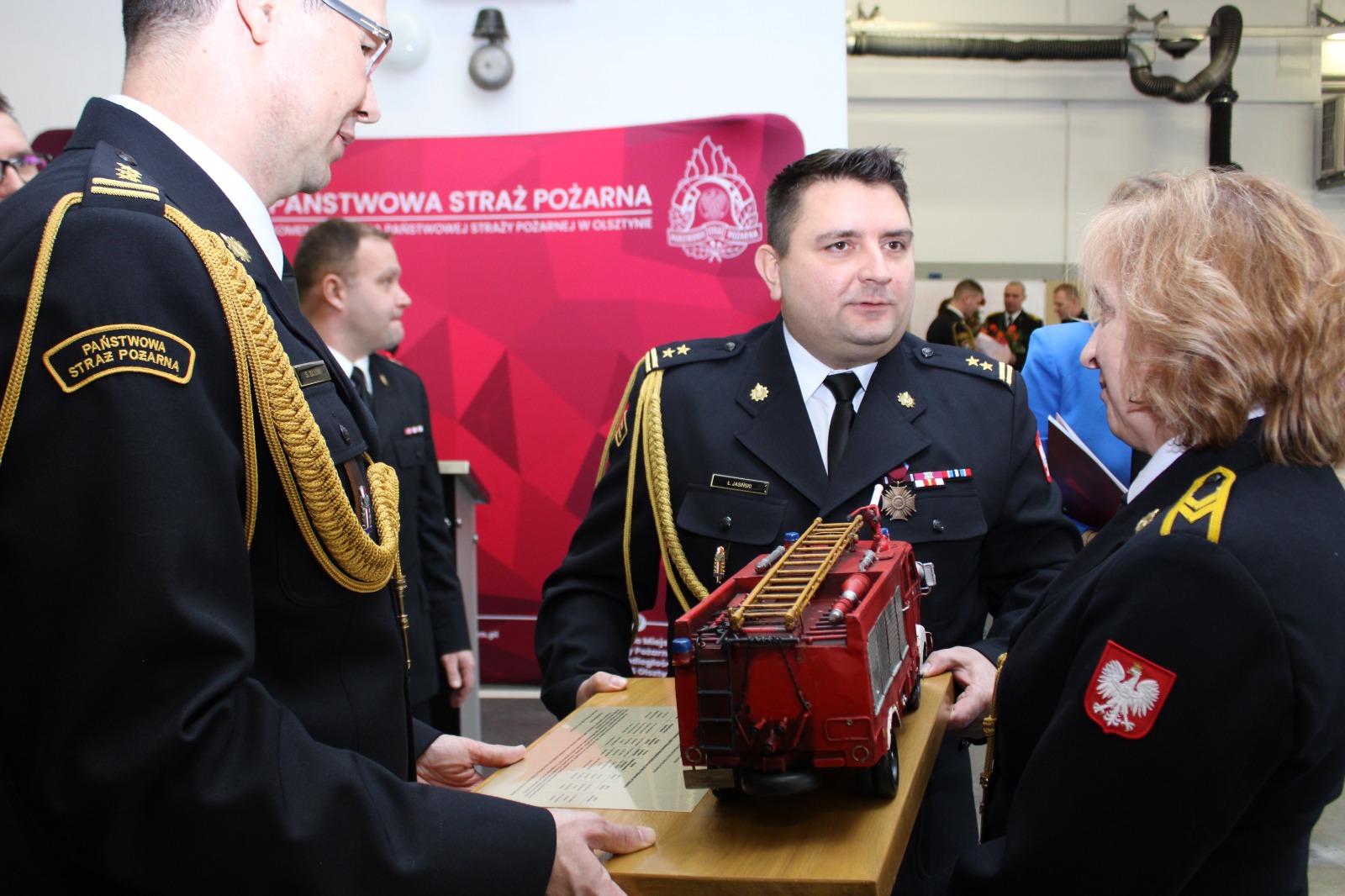 w związku z odejściem na zaopatrzenie emerytalne st. ogn. Katarzyny Turulskiej – starszy technik w sekcji finansów KM PSP Olsztyn oraz st. ogn. Marka Kurka- dowódca zastępu JRG2 Olsztyn.