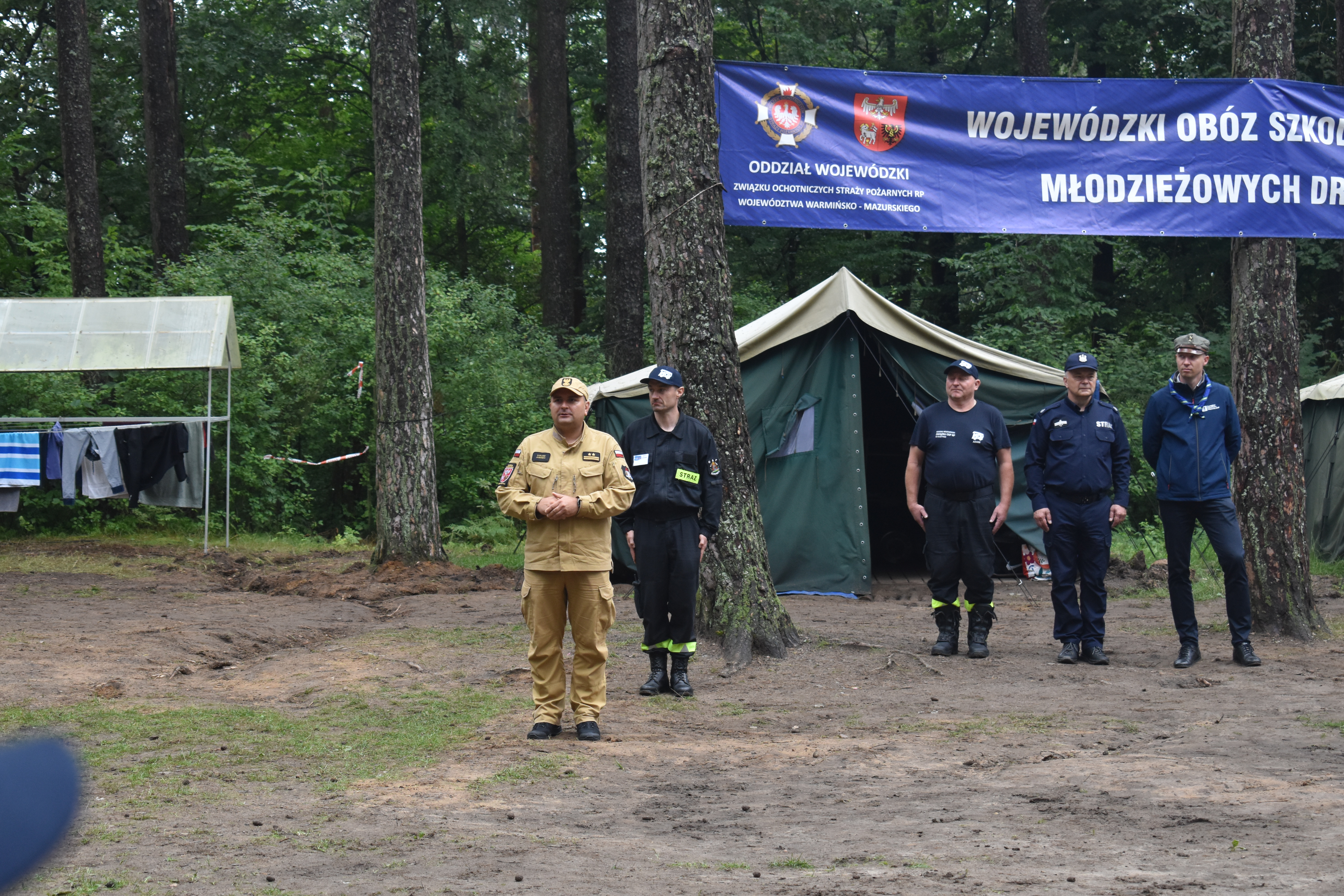 Na uroczystym rozpoczęciu obozu obecni byli: dh Andrzej Ochlak Wiceprezes Zarządu Oddziału Woj. ZOSP RP, dh Maciej Jasiński Dyrektor Zarządu Wykonawczego ZOSP RP w Olsztynie, oraz Maciej Micielski Komendant Chorągwi Warmińsko-Mazurskiej ZHP, Państwową Straż Pożarną reprezentował bryg. Łukasz Jasiński Komendant Miejski PSP w Olsztynie.
