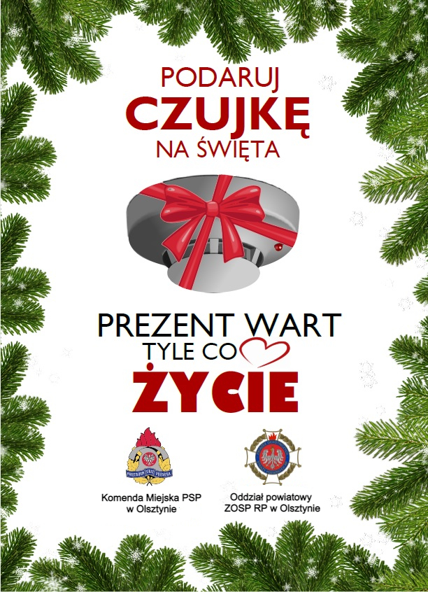 W tym przedświątecznym okresie, strażacy Komendy Miejskiej Państwowej Straży Pożarnej w Olsztynie, wraz z druhami Ochotniczych Straży Pożarnych przygotowali dla mieszkańców naszego rejonu akcję społeczną, proponującą zakup CZUJKI jako świątecznego prezentu dla naszych najbliższych!