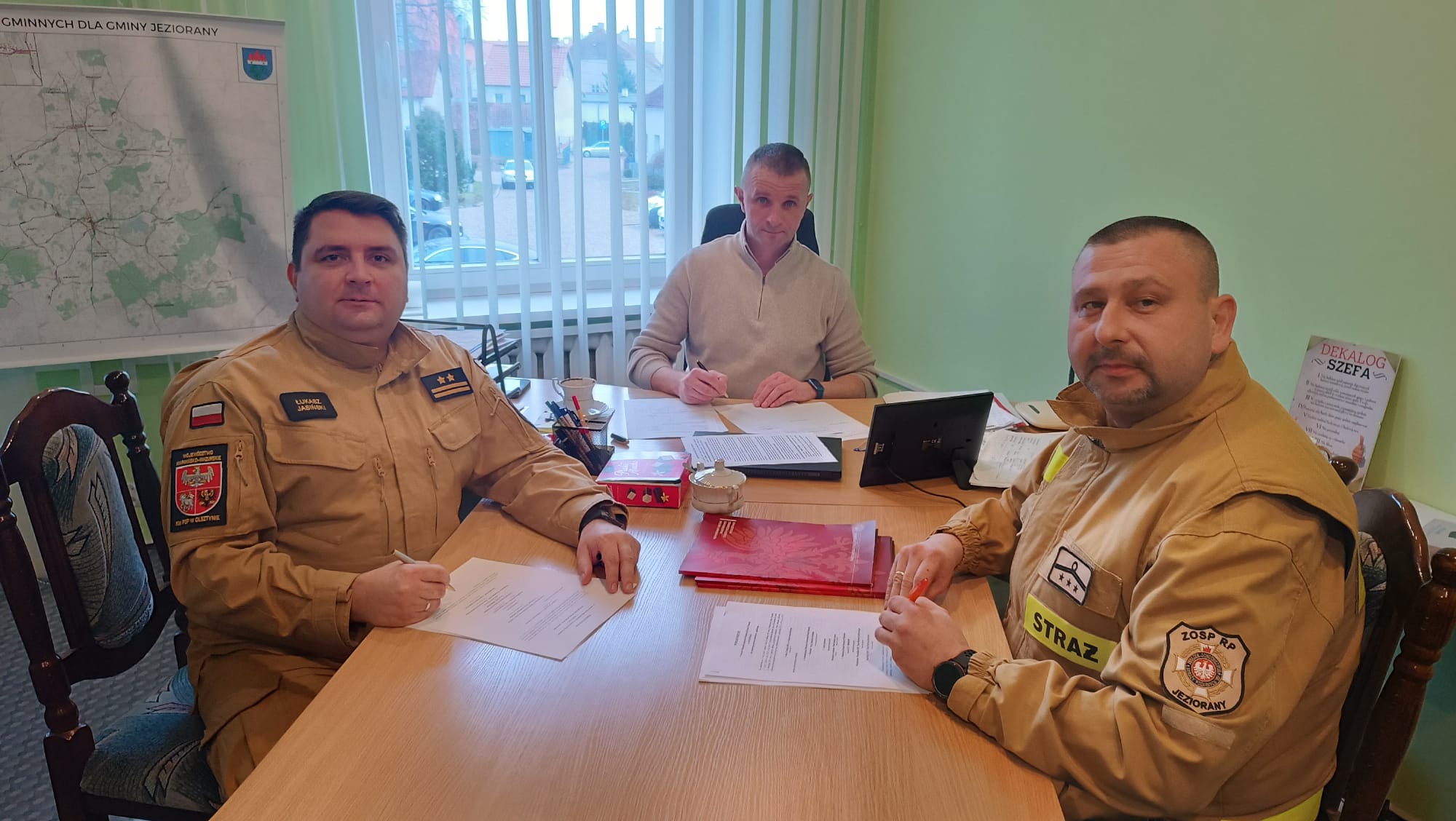 Z ramienia Komendy Miejskiej PSP w Olsztynie porozumienie podpisał Komendant Miejski PSP w Olsztynie bryg. Łukasz Jasiński, z Gminy Jeziorany porozumienie podpisał Burmistrz Jezioran Pan Łukasz Szpara, a z jednostki OSP Wójtówko porozumienie podpisali: Wiceprezes - Naczelnik OSP Wójtówko Pan Mariusz Szutkowski oraz Skarbnik OSP Wójtówko Pani Martyna Budrewicz.