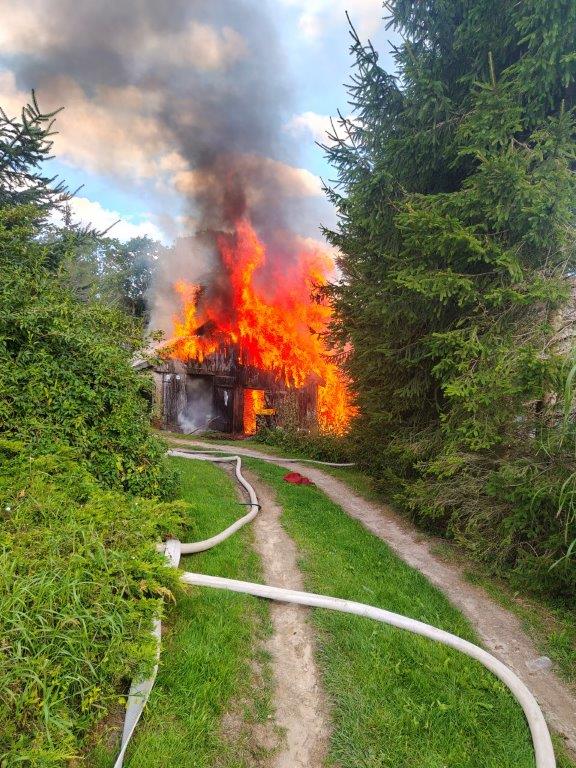 w miejscowości Wilimy gm. Biskupiec pali się garaż.