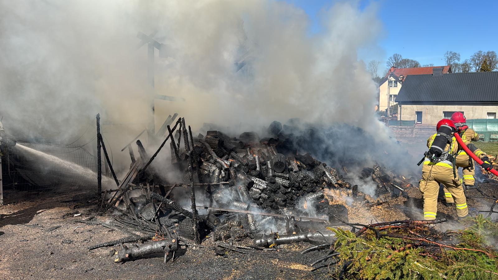 Po przybyciu na miejsce zdarzenia zastano obiekt całkowicie objęty pożarem. Bezpośrednio zagrożone były dwa budynki mieszkalne.