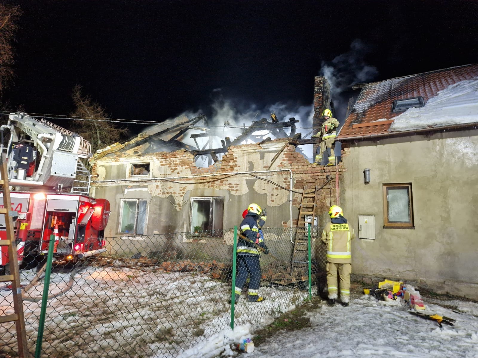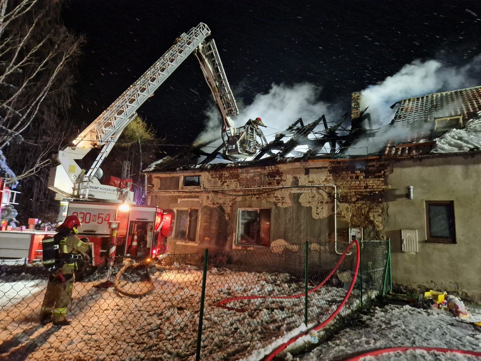 W dniu 7 grudnia br. o godzinie 23:11 do Stanowiska Kierowania Komendanta Miejskiego PSPw Olsztynie wpłynęło zgłoszenie o pożarze domu w miejscowości Frączki, gmina Dywity. Po dotarciu na miejsce zdarzenia pierwszych jednostek potwierdzono rozwinięty pożar połowy dachu w budynku mieszkalnym typu bliźniak, który rozwijał się na pozostałą jego część. W momencie powstania pożaru w obiektach przebywało łącznie pięć osób, które bezpiecznie ewakuowały się na zewnątrz. Działania straży pożarnej polegały na podaniu pięciu prądów wody
