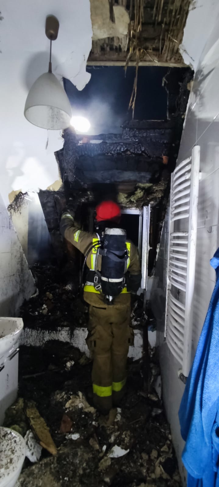 Po ugaszeniu pożaru, za pomocą kamery termowizyjnej sprawdzono stropu i ściany obiektu oraz konstrukcję dachu w celu wykluczenia możliwych innych ognisk pożaru.