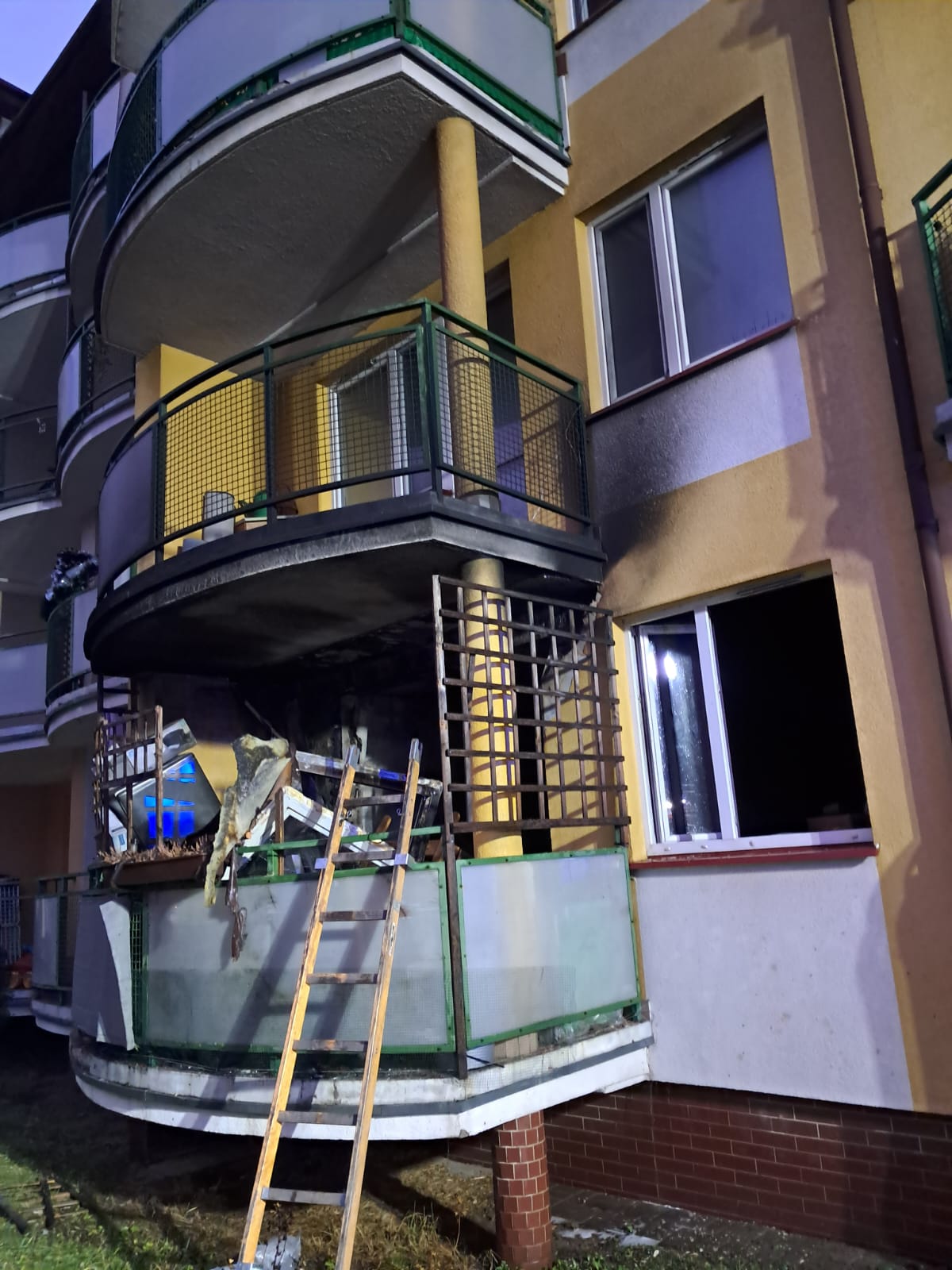 W wyniku pożaru spaleniu uległo mieszkanie wraz wyposażeniem.