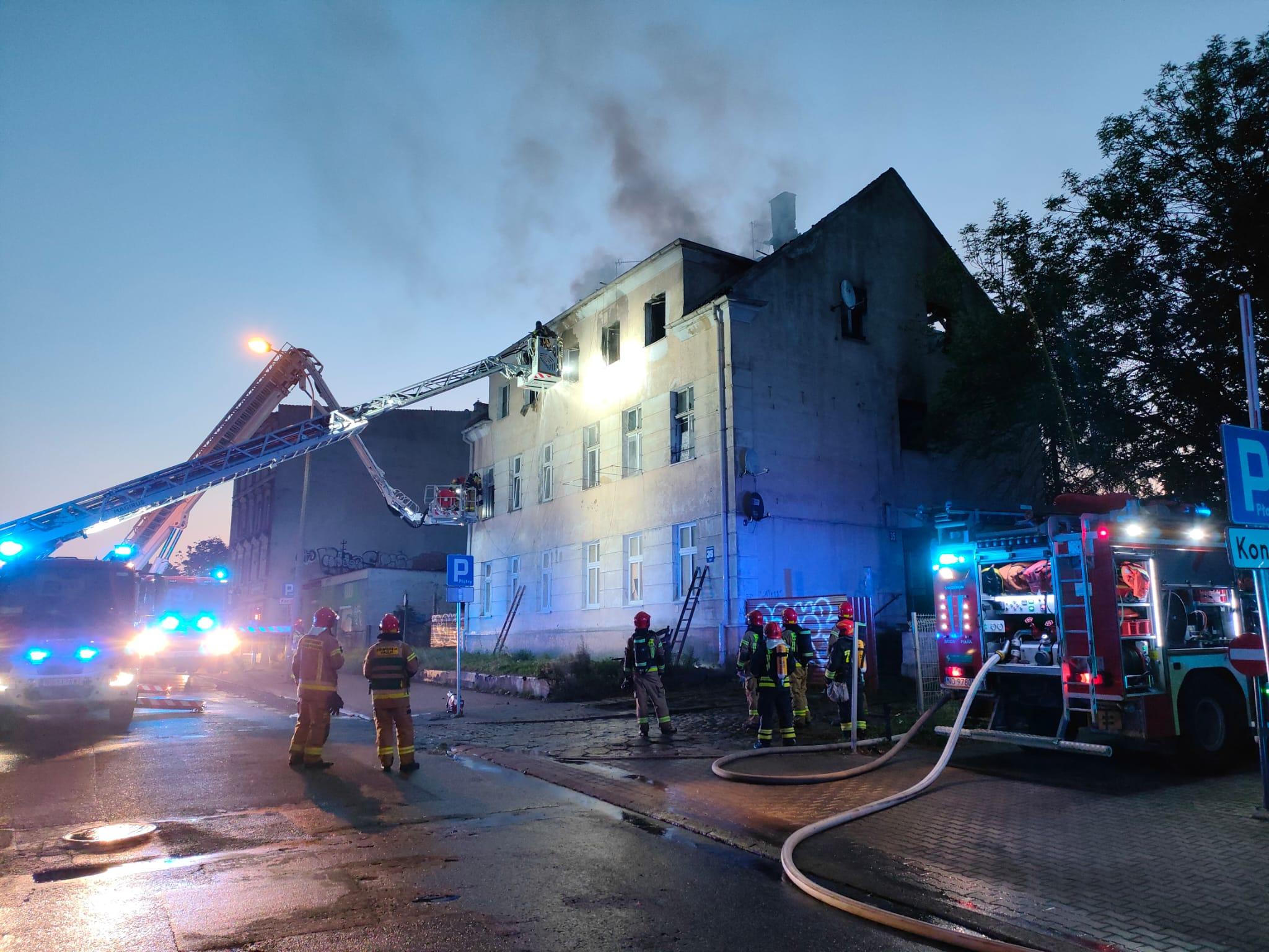 Pożar niezamieszkałej kamienicy przy ul. Warszawskiej w Olsztynie