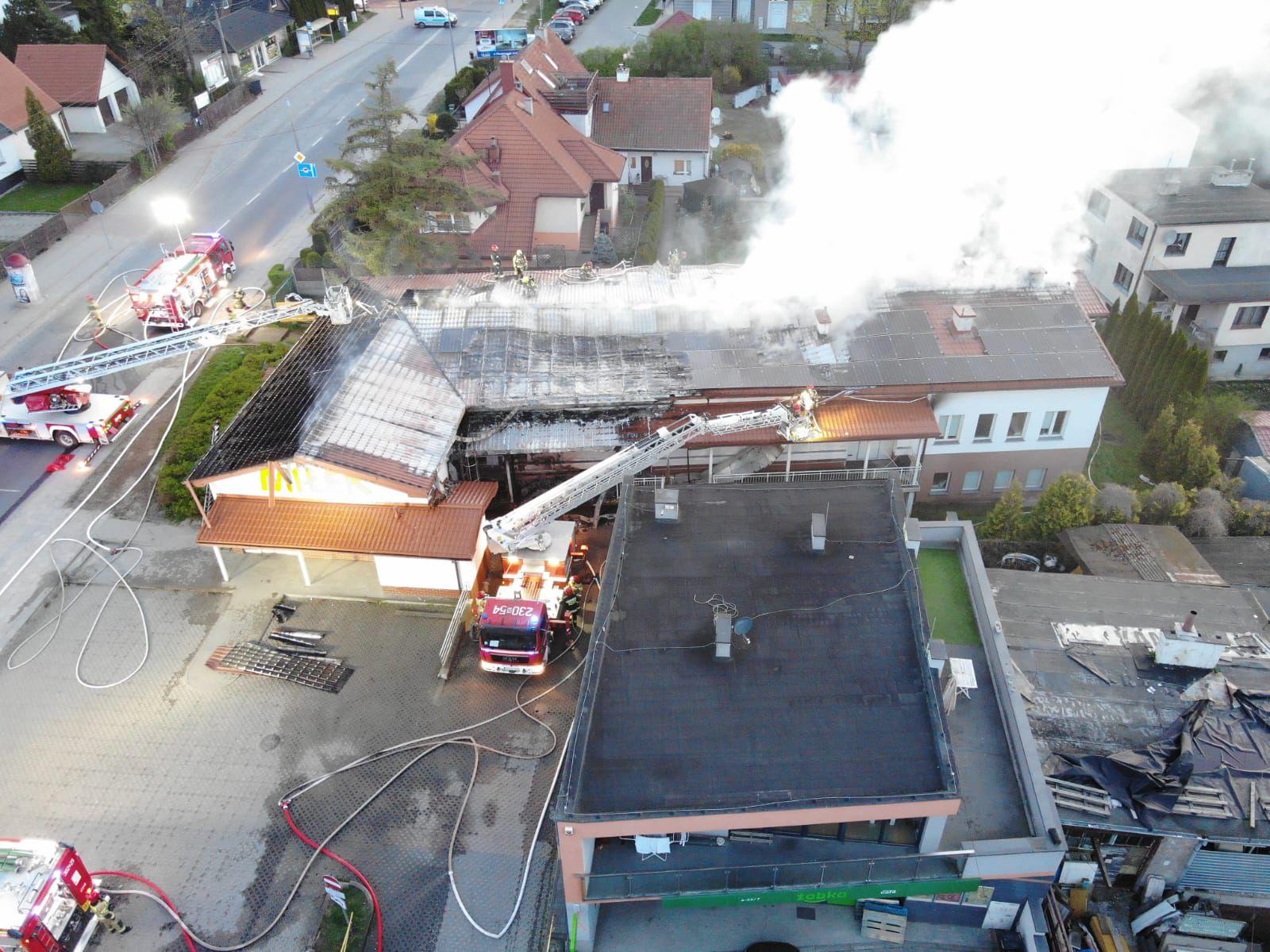 Działania straży pożarnej polegały na podaniu trzech prądów wody w natarciu na źródło pożaru oraz jednego prądu gaśniczego w obronie na sąsiadujący budynek. Dodatkowo wykonano prace rozbiórkowe konstrukcji dachu, sprawdzano obiekt kamerami termowizyjnymi oraz przewietrzono i oddymiono pomieszczenia. Nie odnotowano osób poszkodowanych. Ulica Jagiellońska na czas prowadzonych działań była zamknięta, Policja wyznaczyła objazd.