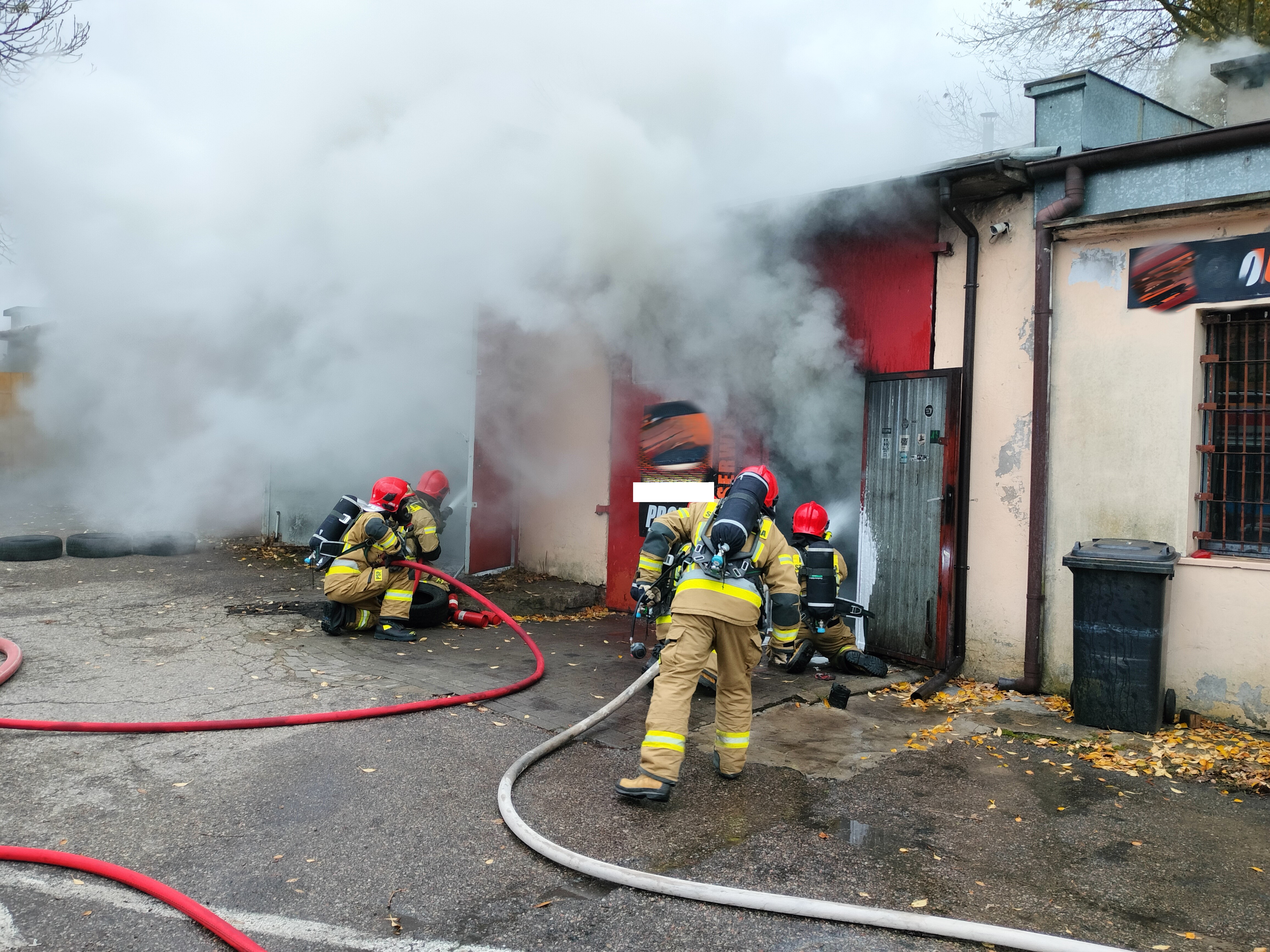 Po przybyciu na miejsce zdarzenia Kierujący Działaniem Ratowniczym potwierdził informację ze zgłoszenia o pożarze samochodu osobowego w warsztacie samochodowym. Pozostałe pojazdy w budynku oraz cały budynek były bezpośrednio zagrożone pożarem. Przed przybyciem zastępów JOP na miejsce zdarzenia, właściciel oraz pracownik warsztatu podjęli nieskuteczną próbę gaszenia.