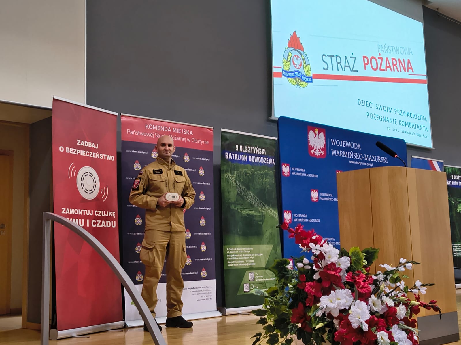 10.12.2025 Funkcjonariusz KM PSP w Olsztynie brał udział w przedsięwzięciu pt. "Dzieci swoim przyjaciołom - Pożegnanie Kombatanta" organizowanym przez Uniwersytet Nowoczesnego Obywatela.