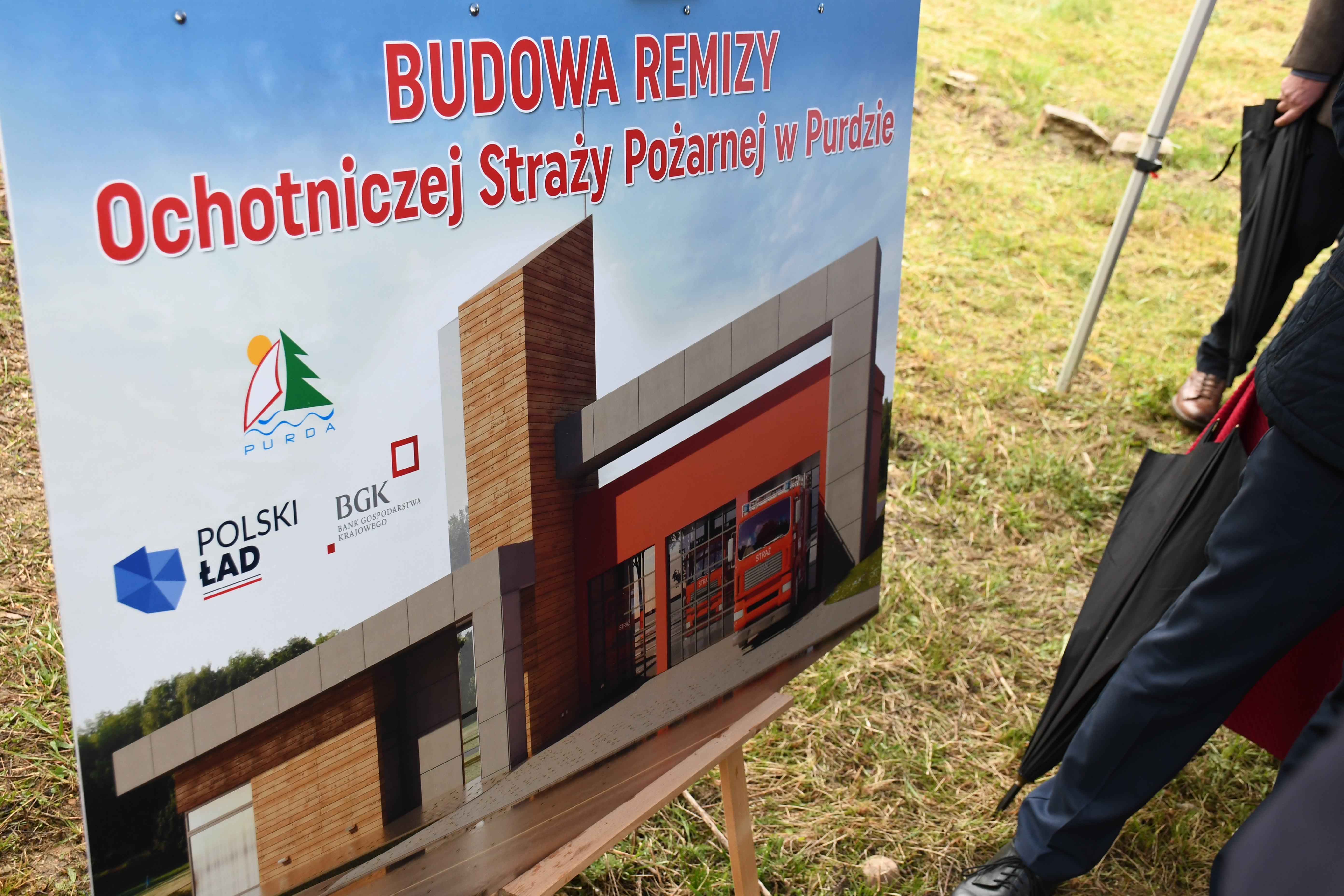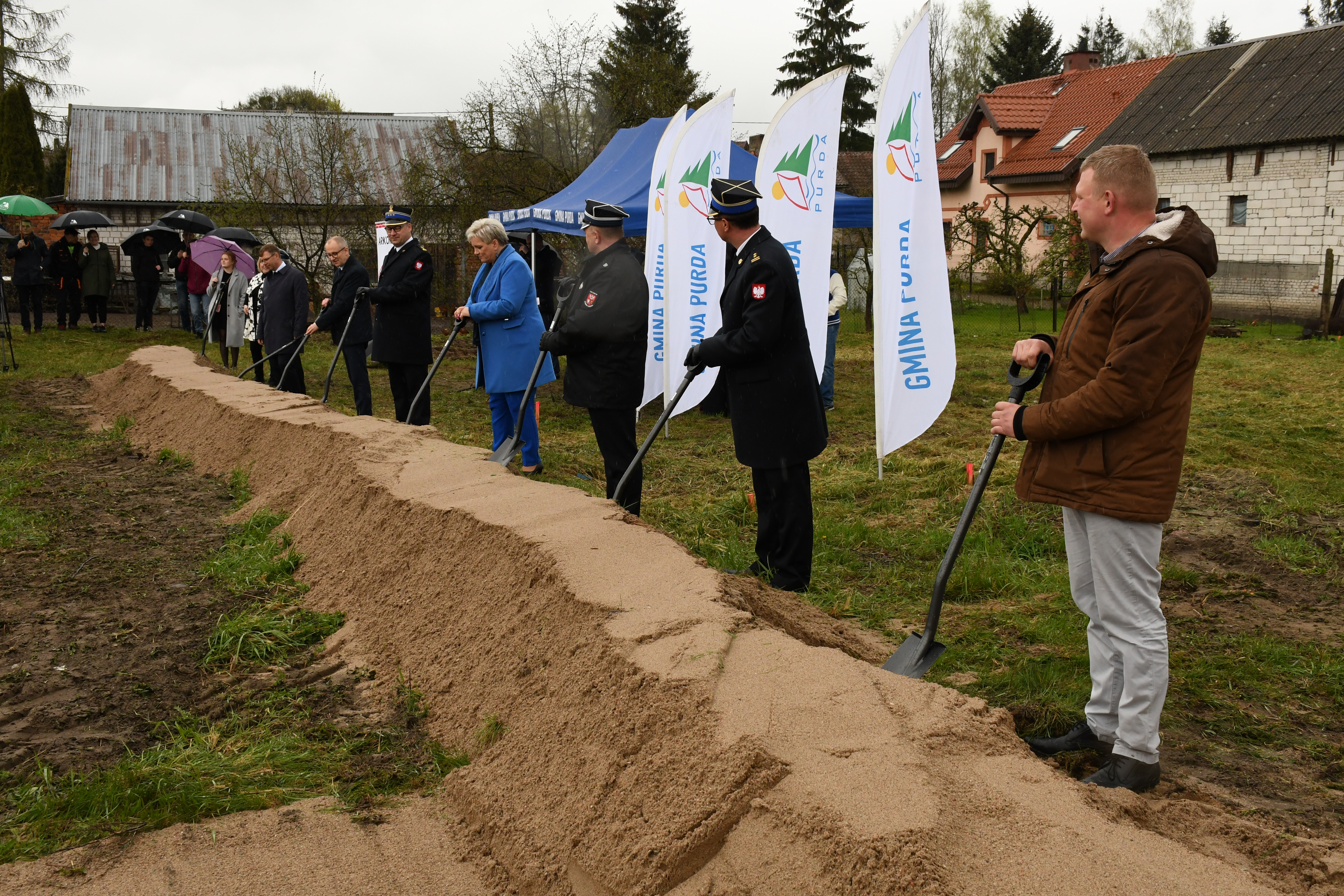 Uroczystą zbiórkę zorganizowano również w miejscowości Purda, gdzie poprzez symboliczne wbicie łopaty rozpoczęto proces budowy nowej remizy jednostce OSP Purda. Dofinansowanie w wysokości 3 mln zł pochodzi z Rządowego Fundusz Polski Ład- Programu Inwestycji Strategicznych.