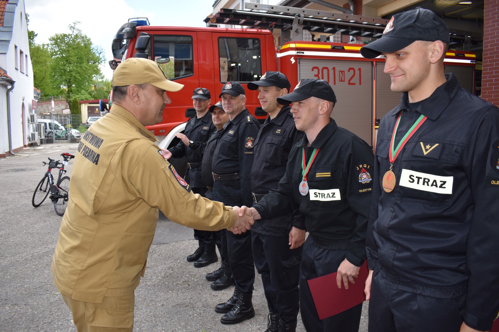 Komendant Wojewódzki PSP oraz Wicewojewoda serdecznie pogratulowali strażakom z JRG1 KM PSP w Olsztynie uzyskanych wyników oraz dodatkowo Warmińsko-Mazurski Komendant Wojewódzki PSP wyróżnił funkcjonariuszy nagrodą pieniężną.