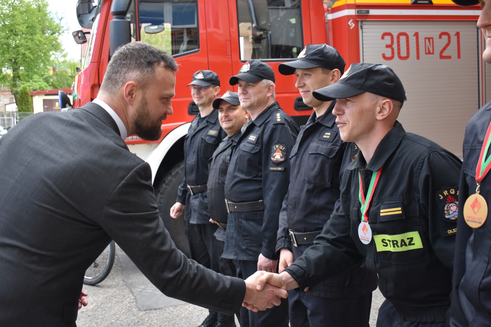 W dniu 12 maja 2022 r. odbyło się spotkanie medalistów mistrzostw świata strażaków World Firefighters Games 2022 w Portugalii z Warmińsko-Mazurskim Komendantem Wojewódzkim PSP nadbryg. Tomaszem Komoszyńskim oraz z Wicewojewodą Warmińsko-Mazurskim Piotrem Opaczewskim. W spotkaniu uczestniczył również z-ca Warmińsko-Mazurskiego Komendanta Wojewódzkiego PSP st. bryg. Adam Jastrzębski oraz Komendant Miesjki PSP w Olsztynie bryg. Jarosław Gryciuk wraz z zastępcami.