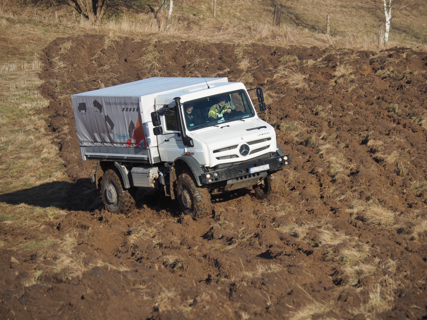 Podjazy i zjazdy, praca z blokadami mechanizmów różnicowych, wpływ obrotów silnika, mocy i momentu obrotowego na zachowanie auta w terenie, wszystko to omawiano i trenowano podczas indywidualnych przejazdów na dosyć wymagającej trasie terenowej.