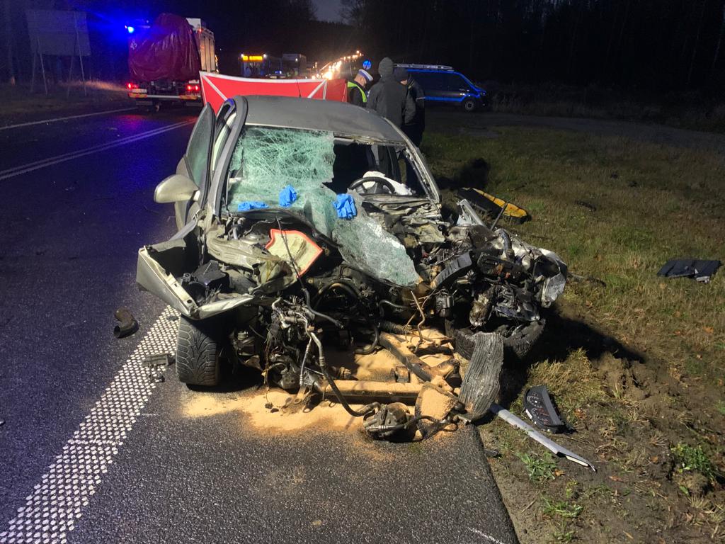 Do tragicznego wypadku doszło dziś około godziny 5 w miejscowości Tomaszkowo na drodze wojewódzkiej nr 527. Czołowo zderzyły się samochód osobowy z ciężarowym. Nasze zastępy przybyły na miejsce już po kilku minutach. W trakcie rozpoznania ustalono, że autami podróżowali tylko kierowcy. Niestety pomimo błyskawicznej akcji strażaków oraz świadków zdarzenia przybyły na miejsce Zespół Ratownictwa Medycznego rozpoznał zgon kierowcy samochodu osobowego. Kierowca samochody ciężarowego z urazem kończyn dolnych został zabrany do szpitala w celu przeprowadzenia dalszej diagnostyki. Na skutek zdarzenia powstały ogromne utrudnienia w ruchu zarówno w kierunku Olsztyna jak i Olsztynka. Cała akcja trwała prawie 2 i pół godziny, w działaniach brało udział 4 zastępy w sumie 21 osób. Oprócz zastępów PSP i OSP na miejsce przybyły 4 patrole policji oraz ZRM.