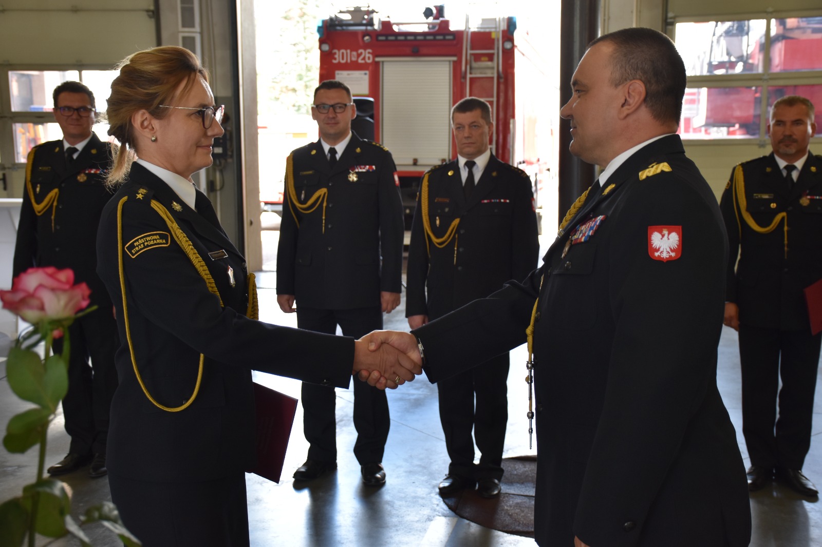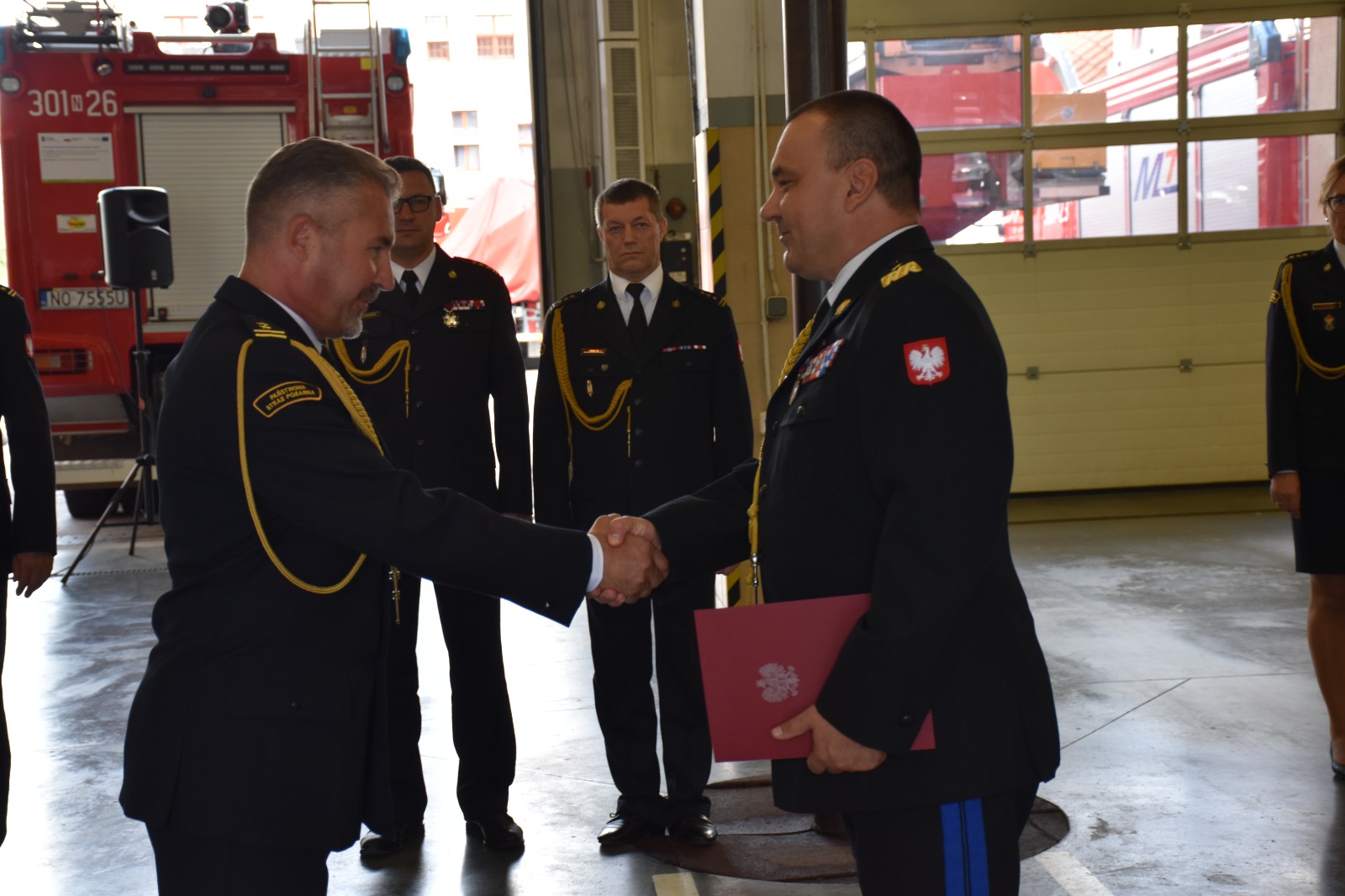 Uroczysta zbiórka, która została zorganizowana w Komendzie Miejskiej PSP w Olsztynie, rozpoczęła się od złożenia meldunku Warminśko – Mazurskiemu Komendantowi Wojewódzkiemu przez dowódcę uroczystości. Po odsłuchaniu hymnu Państwowego Komendant Miejski PSP w Olsztynie, bryg. Jarosław Gryciuk, przywitał uczestników uroczystej zbiórki. Następnie Warmińsko – Mazurski Komendant Wojewódzki PSP wręczył akt powołania na stanowisko Zastępcy Komendanta Miejskiego PSP w Olsztynie oraz decyzję o mianowaniu na stanowisko Naczelnika Wydziału Kwatermistrzowskiego w KW PSP w Olsztynie. Komendant Wojewódzki PSP w Olsztynie w swojej wypowiedzi podkreślił, że przed awansowanymi stoi wiele trudnych zadań do realizacji. Wyraził swe przekonanie, że wiedza i doświadczenie, które posiadają pozwolą na wzorową realizację tych zadań.