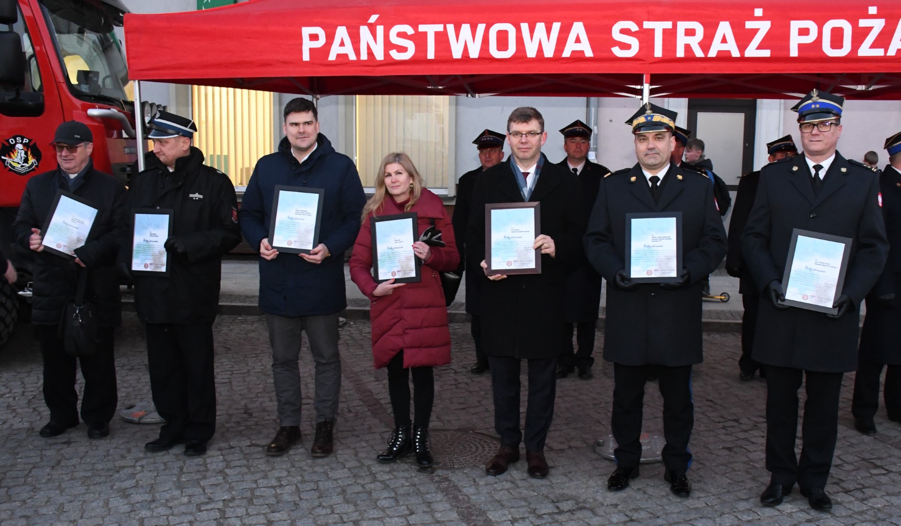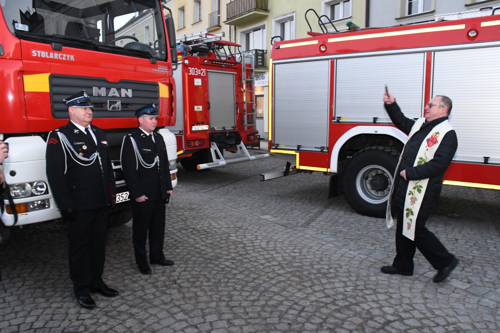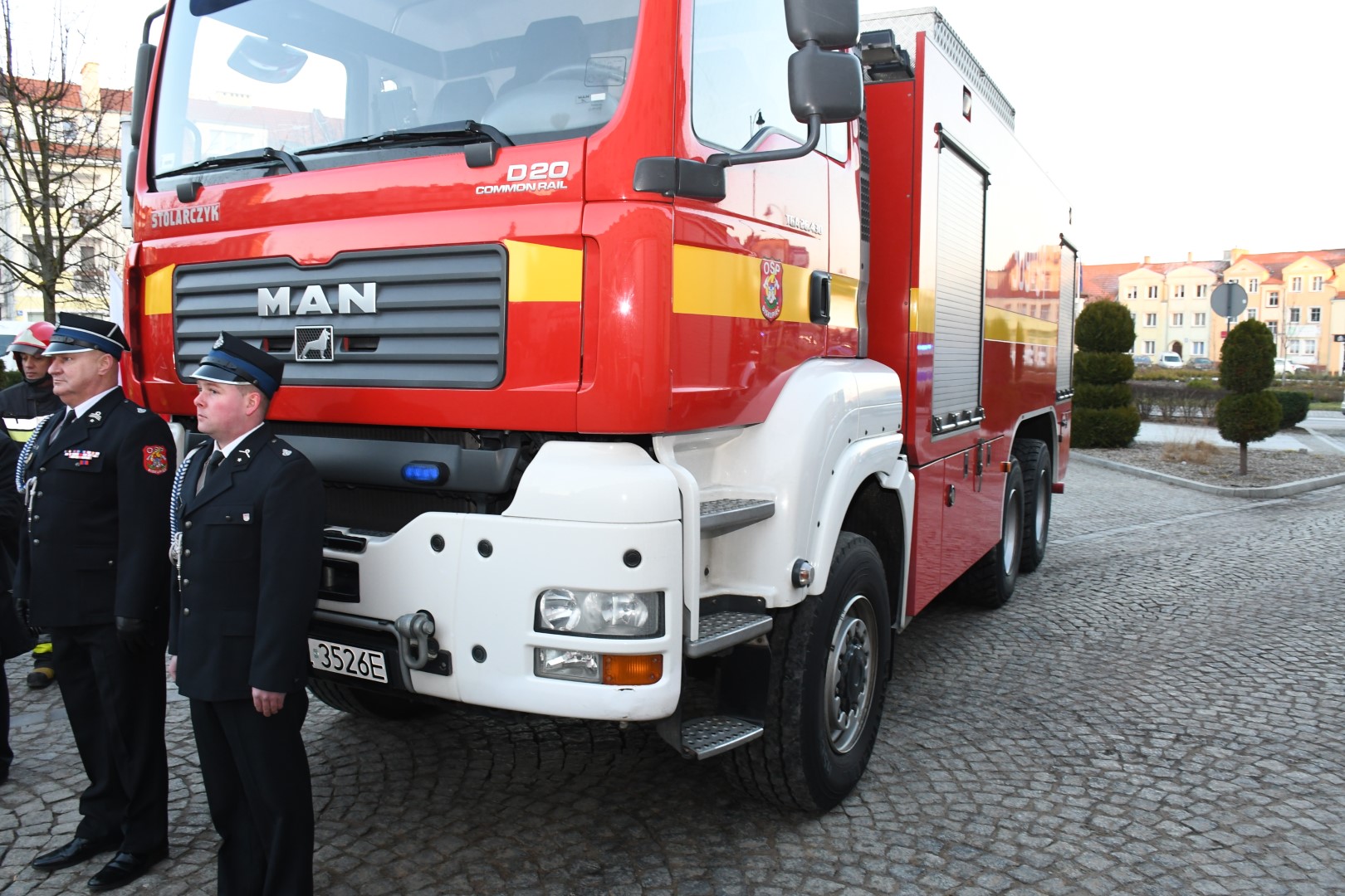 Pierwsza uroczystość odbyła się w garażu JRG2 Olsztyn, gdzie oficjalnie pojazdy otrzymały jednostki Komendy Miejskiej PSP w Olsztynie: